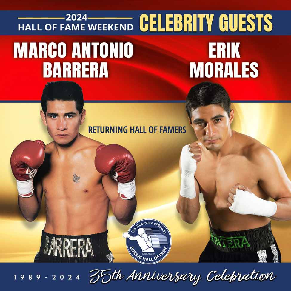 “With their three epic bouts, Marco Antonio Barrera and Erik Morales made boxing history that will never be forgotten,” said Hall of Fame director Edward Brophy. “It will be a special time to have both Hall of Famers together in Canastota to celebrate the Hall of Fame’s 35th anniversary and their tremendous in-ring rivalry.”