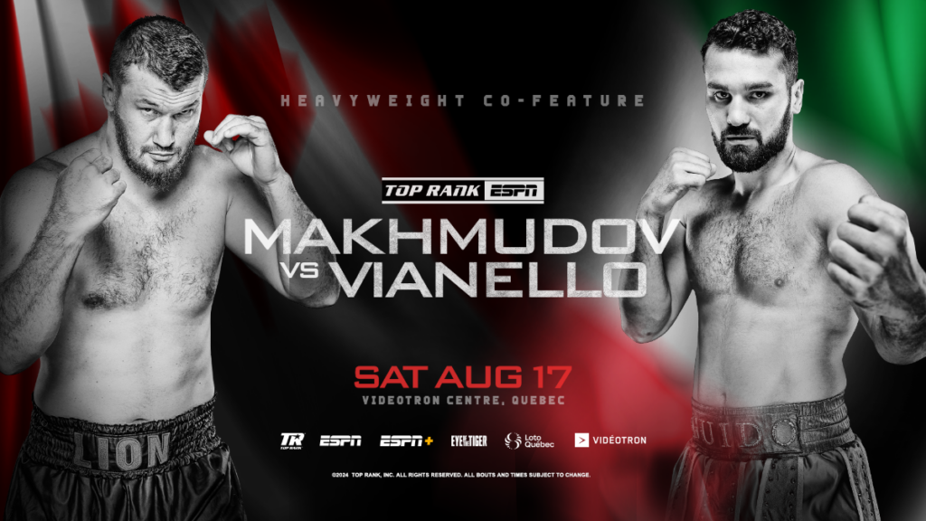 QUEBEC CITY, Canada (June 18, 2024) — Heavyweight contenders Arslanbek “The Lion’” Makhmudov and Guido “The Gladiator” Vianello will do battle in a 10-rounder on Saturday, Aug. 17 at Videotron Centre in Quebec City, Canada.