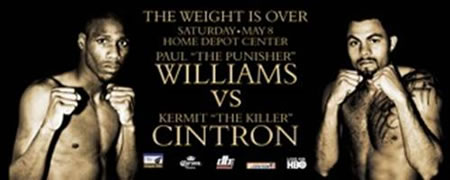The most feared fighter in the world, and three-time World Champion Paul “The Punisher” Williams will face former Welterweight World Champion and knockout artist Kermit “The Killer” Cintron on Saturday, May 8 at the Home Depot Center in Carson, CA. The two fighters will meet above Williams natural 147 pounds and subsequently being dubbed “The Weight is Over,” in a bout televised by HBO at 10 p.m. ET/PT (delayed on the west coast) and presented by Goossen Tutor Promotions in association with Di Bella Entertainment. The two fighters and their promoters participated in a conference call to discuss the upcoming 12-round fight and the significance it means to the welterweight division.