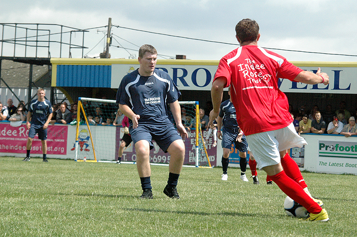 League Two suddenly became a two horse race with Ultrachem TKO Indee Rose Trust continuing their unbeaten run with a convincing 2-0 victory over Steve Lillis team of Journos. Steve’s attempt to add some striking power to his ailing team, which had yet to score a single goal, by poaching David Haye’s manager/coach from the Ultrachem TKO Gym team had failed. They had one game still to play but as that was against Jimmy Mac’s Mashers the chances of them not picking up the event’s wooden spoon looked seriously slim.