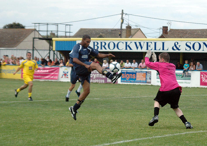 With just five minutes to go it looked that Wayne was to finally keep his record. A beautiful cross found him in a completely unmarked position. Wayne leapt up to delicately chip the ball over the keeper. It looked a sure equaliser, but alas it was not to be, the ball just didn’t want to drop and skimmed just the wrong side of the cross bar