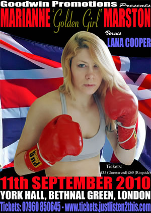 Marianne ‘Golden Girl’ Marston versus Lana Cooper will be on Saturday 11th September 2010 as part of the Steve Goodwin promoted ‘It’s Personal’ event at York Hall, Bethnal Green, London.