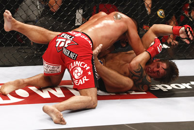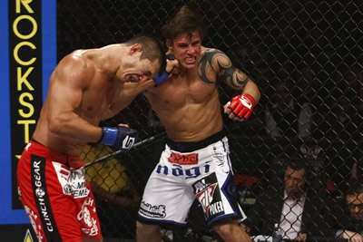 Evangelista, making his first start since Nov. 6, 2009, won an absolute slugfest by the scores of 30-27 twice and 29-28. The extremely popular local fighter is a natural 155-pounder and Friday’s fight was at a catch weight of 165. The naturally bigger and stronger Spirit Wolf, who fights at welterweight (170), used his size and strength to his advantage throughout and some thought the scoring could have been closer.