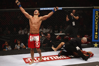 In other results on the televised portion of an event presented by STRIKEFORCE and Rockstar Energy Drink: Johnson (15-3), of Fresno, scored an explosive 2:17, first-round knockout over Virgil Zwicker (9-2), of Temecula, Calif., in a heavyweight scrap; the comebacking Evangelista (11-0, 1 NC), of Fresno, won the fight of the night with a thrilling, crowd-pleasing, hard-fought three-round unanimous decision over Waachiim Spirit Wolf (8-7-1), of San Diego, Calif., in a catch weight bout at 165 pounds; Julia “The Jewel” Budd (1-0), of Sechelt, British Columbia, made an instant impression at 145 pounds, impressively winning her pro debut with a second-round TKO (punches) over previously unbeaten Shana Olsen (4-1), of Burnsville, Minn., and John Devine (5-2), of San Francisco, submitted (rear-naked choke) Brandon Cash (5-3), of Fresno, at 3:20 of the first round in a heavyweight match.