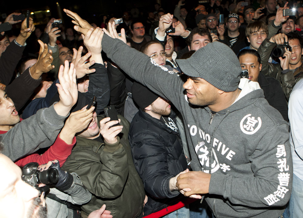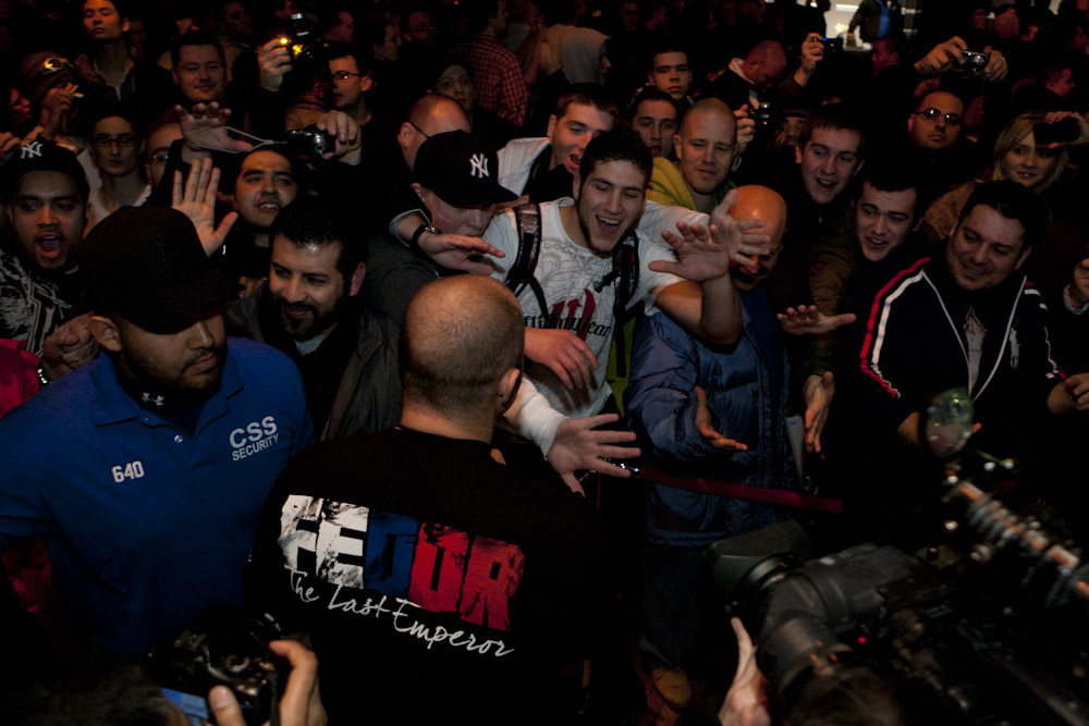Dyami Arroyo of The Bronx was the first to show at 8:30 a.m. Despite cold, bitter, windy conditions, he kept his spot at the head of the line. “There was no way I was going to miss a chance to meet Fedor and the greatest heavyweights in the world,” he said. “As soon as I heard about this, I told my boss I was taking the day off.”