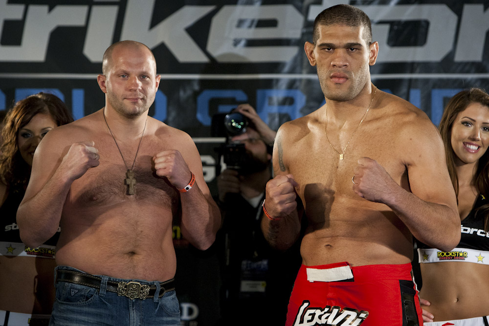 At the outset of the weigh-in Friday, it was announced that the next two quarterfinal fights in the STRIKEFORCE World Grand Prix — Heavyweight Tournament would take place on Saturday, April 9. Tomorrow/Saturday, Feb. 12, the STRIKEFORCE World Grand Prix begins live on SHOWTIME® (10 p.m. ET/PT, delayed on the West Coast) from IZOD Center in East Rutherford, N.J. In the main event, Fedor Emelianenko (31-2, 1 NC) faces Antonio “Big Foot” Silva (15-2) in a STRIKEFORCE and M-1 GLOBAL co-promoted event. The opening quarterfinal on the telecast will match former world champion Andrei Arlovski (15-8) against Russian star Sergei Kharitonov (16-4), the last fighter to defeat STRIKEFORCE and DREAM Heavyweight World Champion Alistair “The Demolition Man” Overeem.