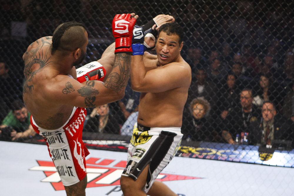 In other results on Saturday’s all-heavyweight televised portion of an event presented by Rockstar Energy Drink, undefeated Shane Del Rosario (11-0) of Irvine, Calif., submitted (arm-bar) Lavar “Big’’ Johnson (15-4) of Madera, Calif., at 4:31 in the first, Chad “The Grave Digger’’ Griggs (10-1) of Tucson, Ariz., won his fifth consecutive start, stopping Gian Villante (7-2) of Bellmore, N.Y., at 2:49 in the opening round and Valentijn Overeem (29-25) of Amsterdam, Holland, won his STRIKEFORCE debut via submission (neck crank) over Ray “Sugarfoot’’ Sefo (2-1) at 1:37 in the first.