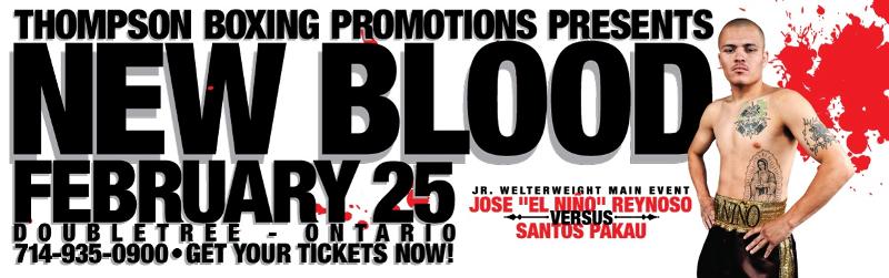 ORANGE, CA – On Friday, February 25, at the Doubletree Hotel in Ontario, California, Thompson Boxing Promotions is back with a stellar group of the sport’s premier young talent that is ready to inject some “New Blood” back into the sweet science.