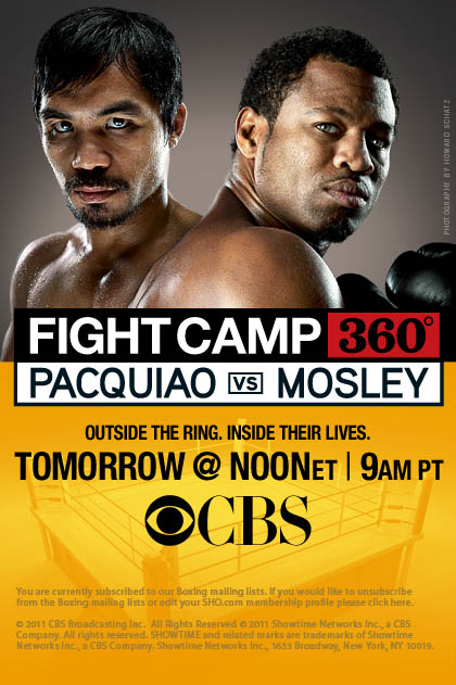 Fight Camp 360: Pacquiao vs. Mosley on CBS Isaac Barrio / April 2, 2011 Fight Camp 360: Pacquiao vs. Mosley on CBS
