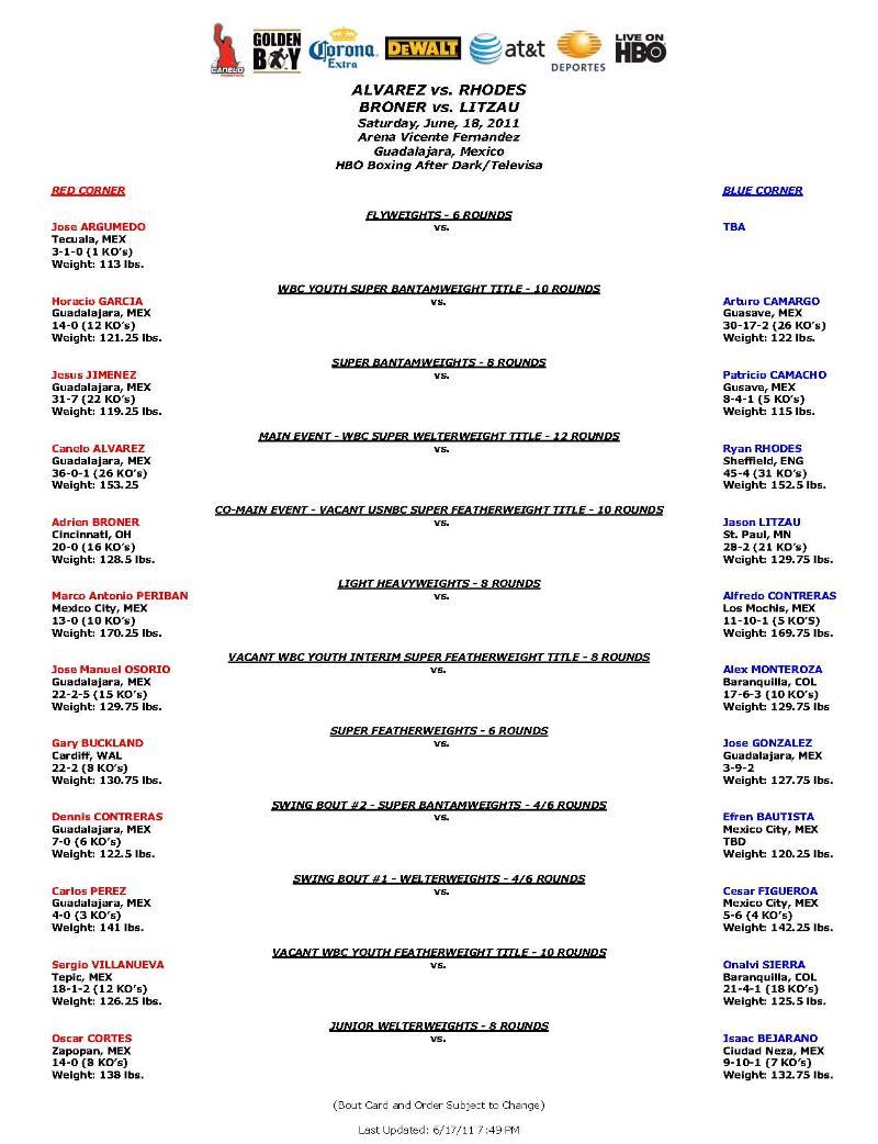 WEIGHTS ARE IN FOR ALVAREZ vs RHODES Isaac Barrio / June 18, 2011 WEIGHTS ARE IN FOR ALVAREZ vs RHODES