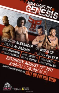 A fledgling promotion headed by respected Albuquerque-area businessmen Torry Crooks and Nick Montoya, MMA Fight Pit is focused on bringing a new level of MMA to fans in New Mexico. The region is known for producing some of the very best fighters in the world, and as a result, the demand for high-quality fight action is high. MMA Fight Pit will put on its first event at “The Pit,” a world-famous sports venue, when it presents MMA FIGHT PIT: “GENESIS.” The event will feature many UFC® and WEC® veterans, as well as local stars. The lineup includes Houston “The Assassin” Alexander, “Razor” Razak Al-Hassan, Jens “Lil’ Evil” Pulver, Coty “Ox” Wheeler, Junie Browning, Lenny Lovato, Jamie Yager, Angelica Diaz, Diana Rael, and others. This incredible fight event will be available on Pay-Per-View. For more info on MMA Fight Pit, please head to http://www.mmafightpit.com/