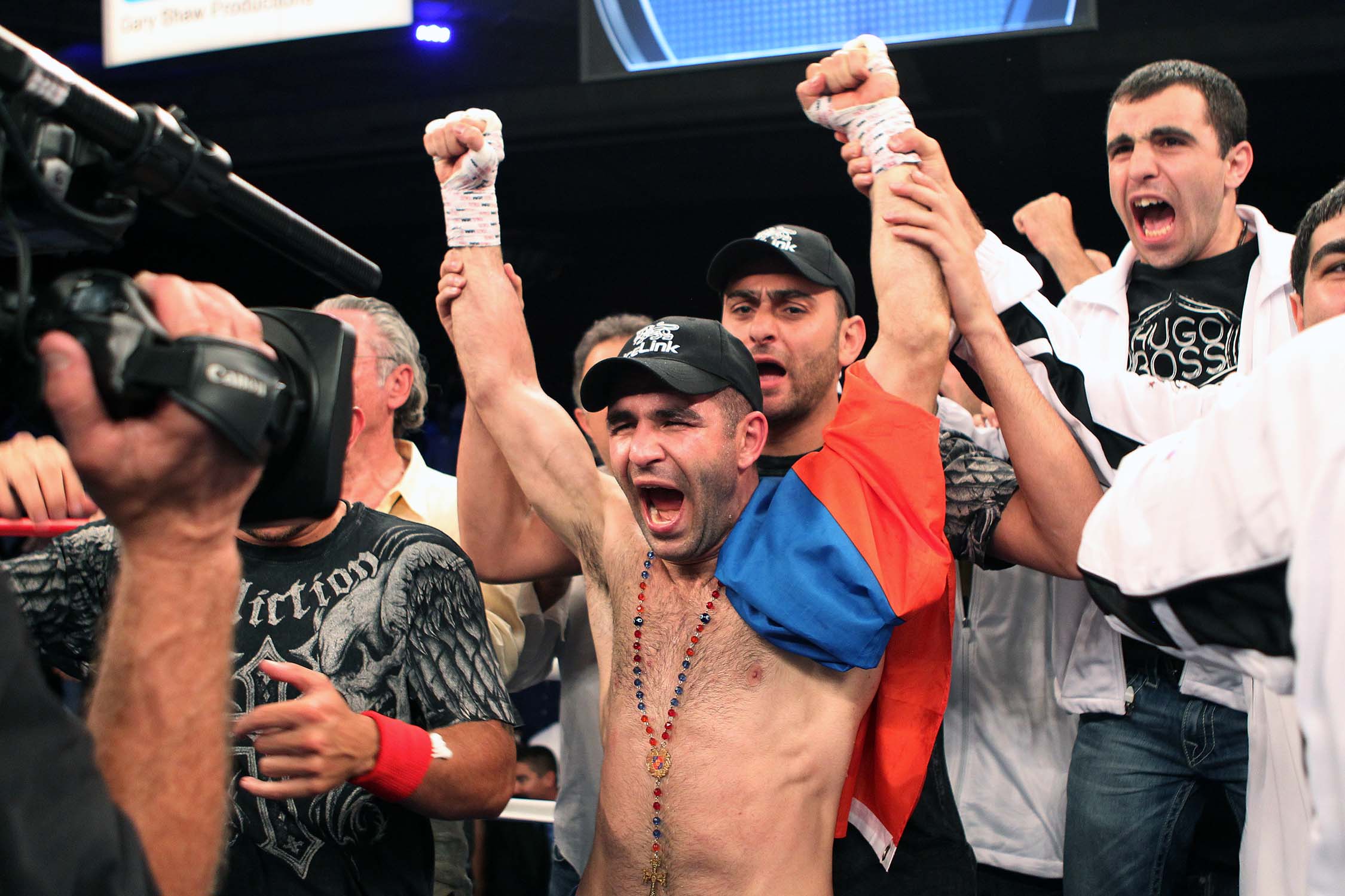 Among those rooting on Hovhannisyan was popular women’s Mixed Martial Arts superstar, Ronda Rousey, who trains at the same Glendale gym as the boxer and has the same trainer, Edmond Tarverdyan.