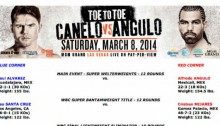 “TOE TO TOE: Canelo vs. Angulo,” a 12-round super welterweight fight taking place Saturday, March 8 at the MGM Grand Garden Arena in Las Vegas, is promoted by Golden Boy Promotions and Canelo Promotions and sponsored by Corona, AT&T and Casamigos Tequila.