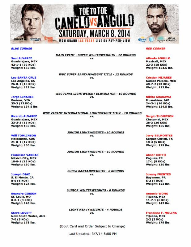 “TOE TO TOE: Canelo vs. Angulo” Official Weights And Photos Isaac Barrio / March 8, 2014 Photo Credit: Tom Casino/SHOWTIME