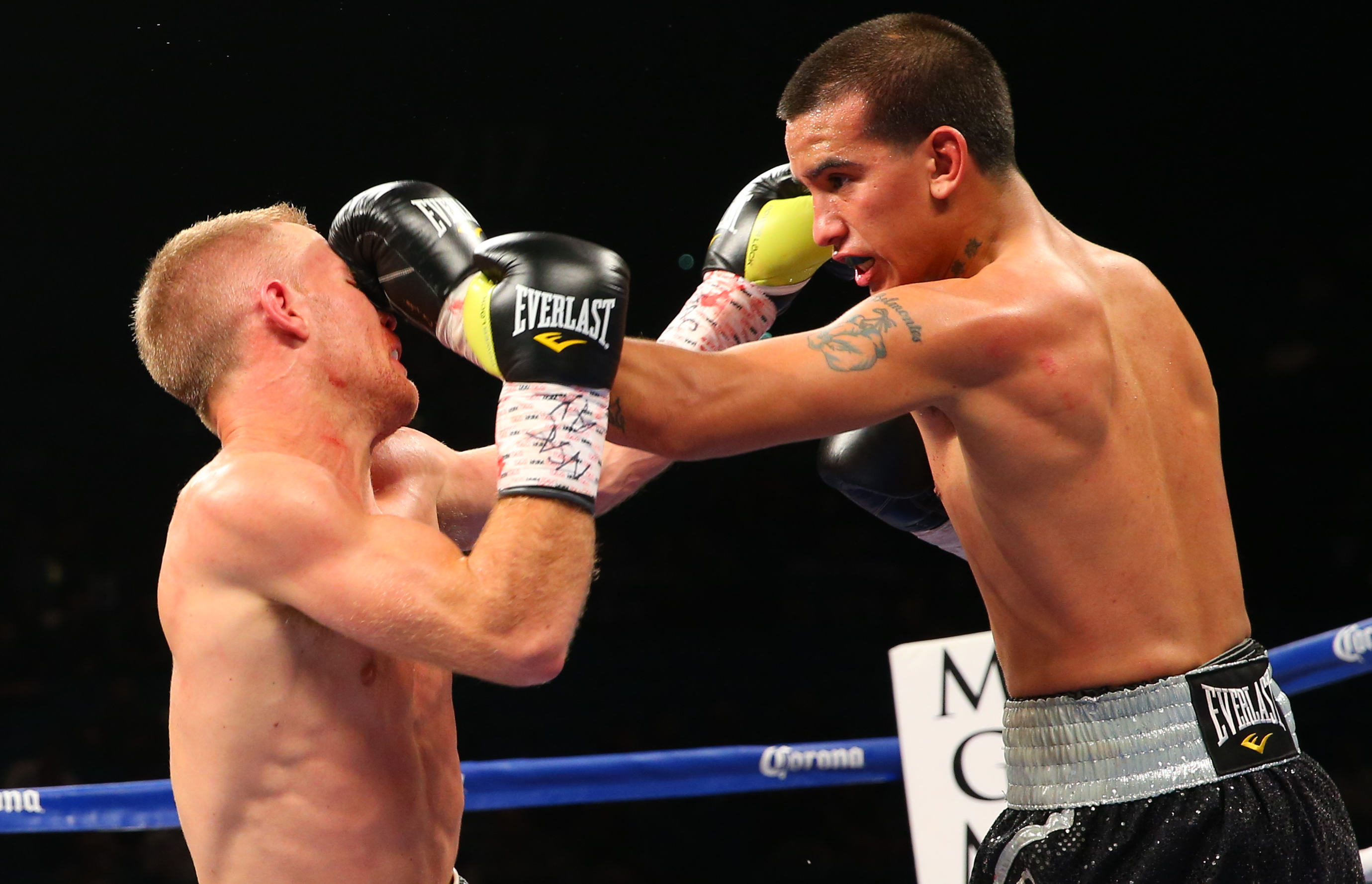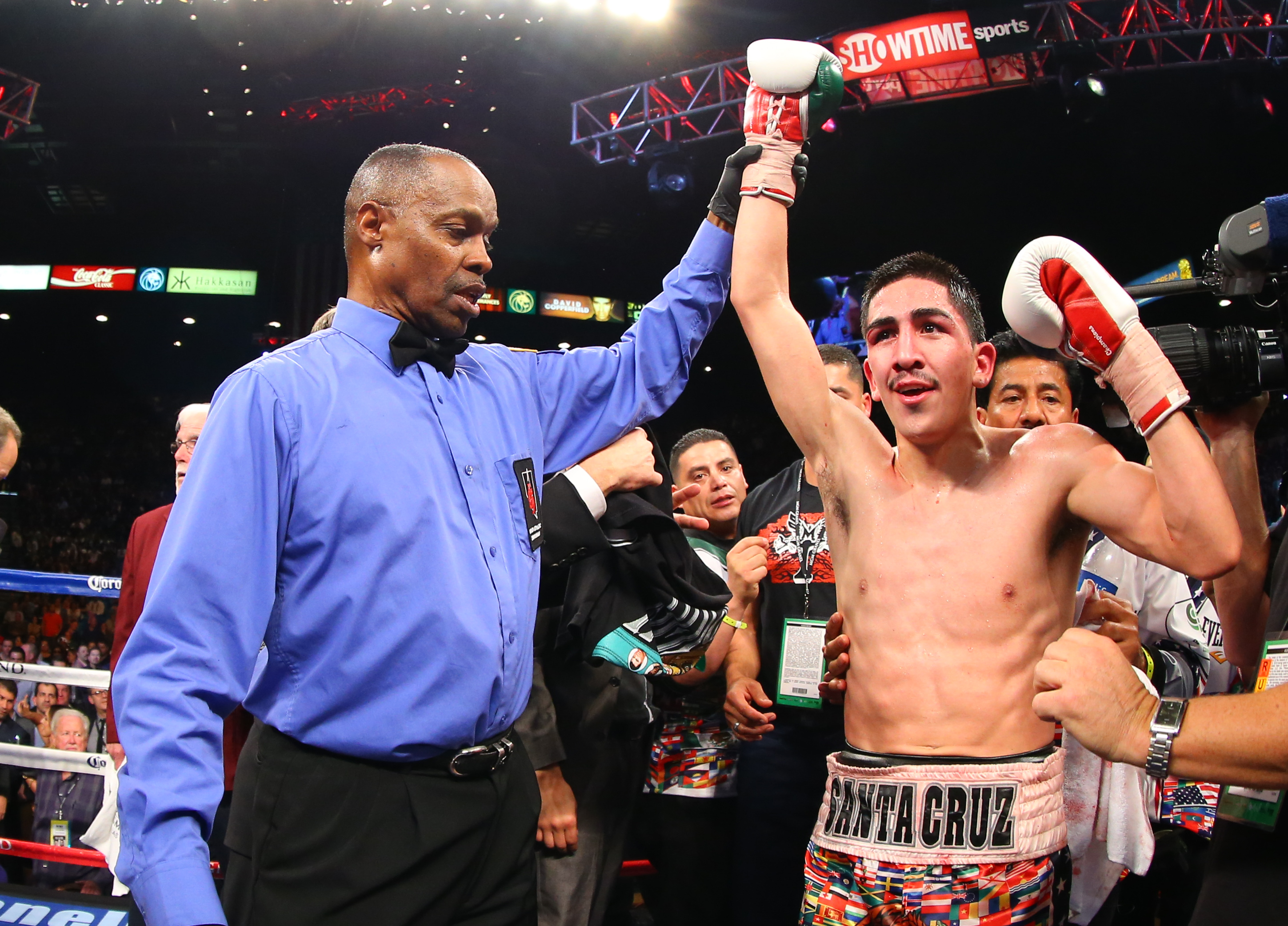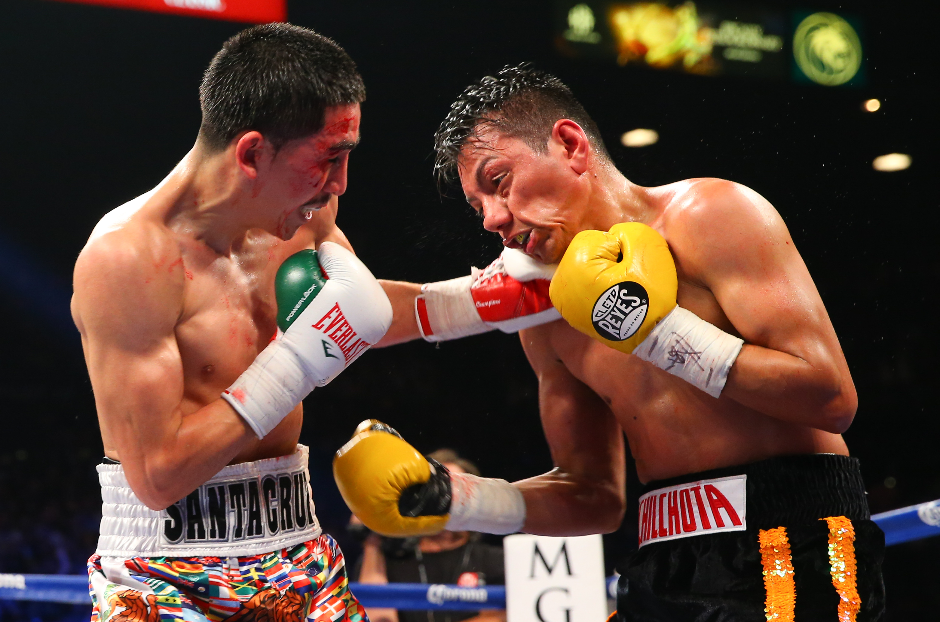The two-division champion Santa Cruz put on a brilliant performance in his second successful 122-pound title defense, suffocating his opponent with more than 1,000 punches in what seemed like target practice against the former world champ. Santa Cruz (27-0-1, 15 KOs) showcased a tremendously effective uppercut, pressing forward throughout the fight despite a deep gash above his right eye that was caused by an accidental clash of heads.