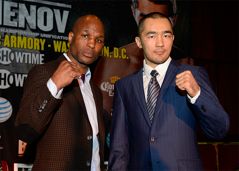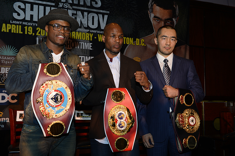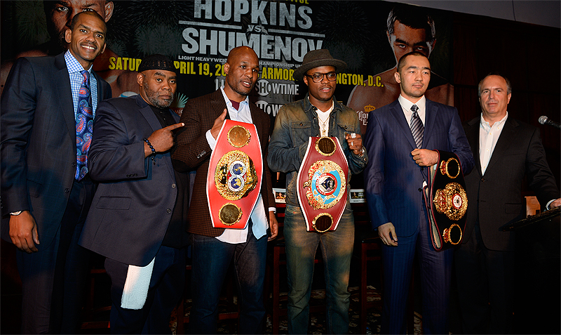 NEW YORK – IBF Light Heavyweight World Champion Bernard Hopkins and WBA Super World Champion Beibut Shumenov continued their media tour on Wednesday at Lucille’s Bar & Grill inside B.B. King’s Blues Club in New York to formally announce their world championship unification onSaturday, April 19, live on SHOWTIME®from the DC Armory in Washington, D.C.