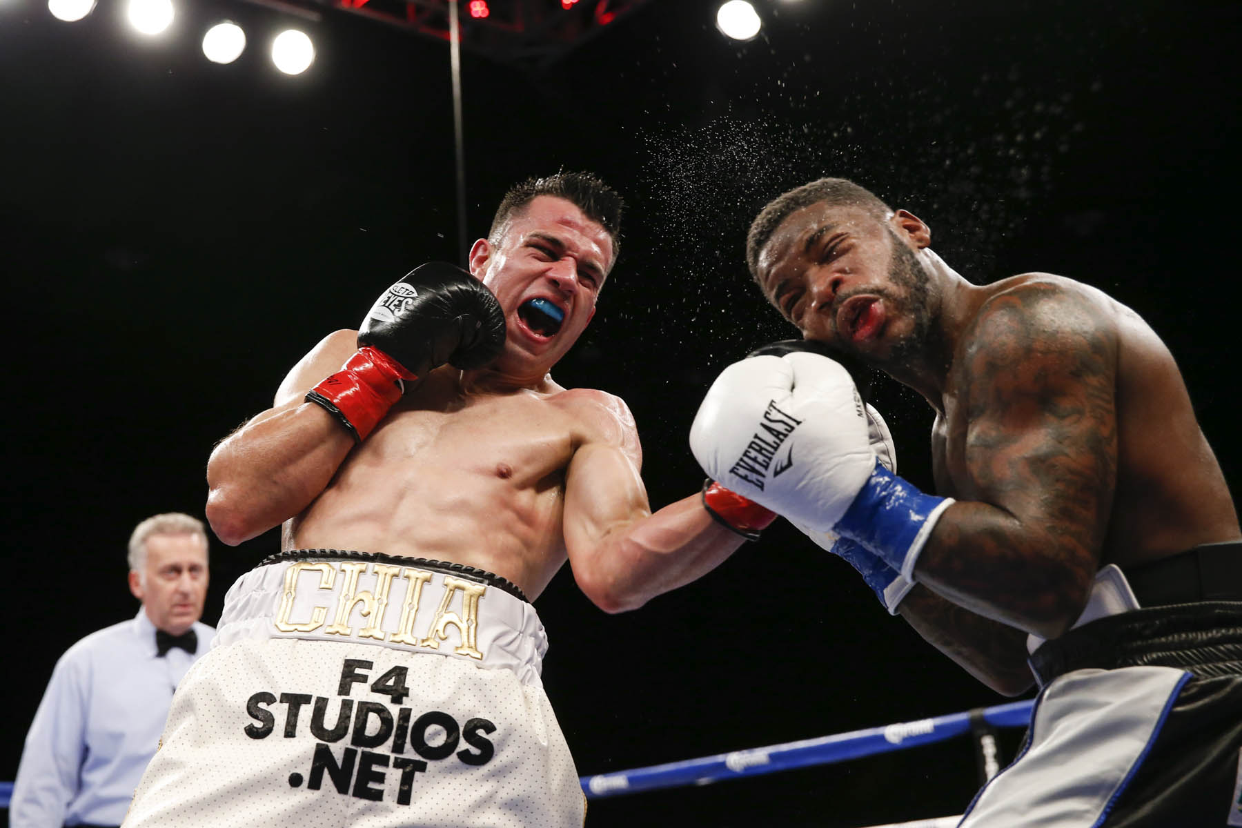 Promising middleweight Hugo “The Boss” Centeno Jr. (21-0, 11 KOs), 23, of Oxnard, Calif., kept his “O” intact, having his way en route to a lopsided 10-round decision over late-substitute Gerardo Ibarra (14-1, 8 KOs), of Houston. Previously undefeated Eddie “E Boy” Gomez (16-1, 10 KOs), of Bronx, N.Y., wasn’t so fortunate, losing an upset 10-round decision to surging Francisco “Chia” Santana (20-3-1, 7 KOs), of Santa Barbara, Calif., who won his eighth consecutive fight in a crowd-pleasing co-feature.