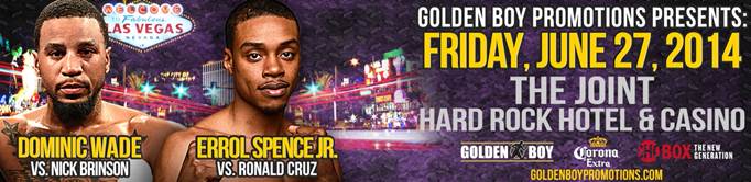 In the ShoBox main event, Errol “The Truth” Spence, Jr. (12-0, 10 KOs), of Dallas, Texas, will face young veteran Ronald Cruz(20-3, 15 KOs), of Bethlehem, Pa., in a 10-round welterweight bout. In the co-feature, Dominic “Lights Out” Wade (15-0, 11 KOs), of Washington, D.C., takes on New York’s Nick “The Machine Gun” Brinson (16-1-2, 6 KOs) in a 10-round middleweight clash.