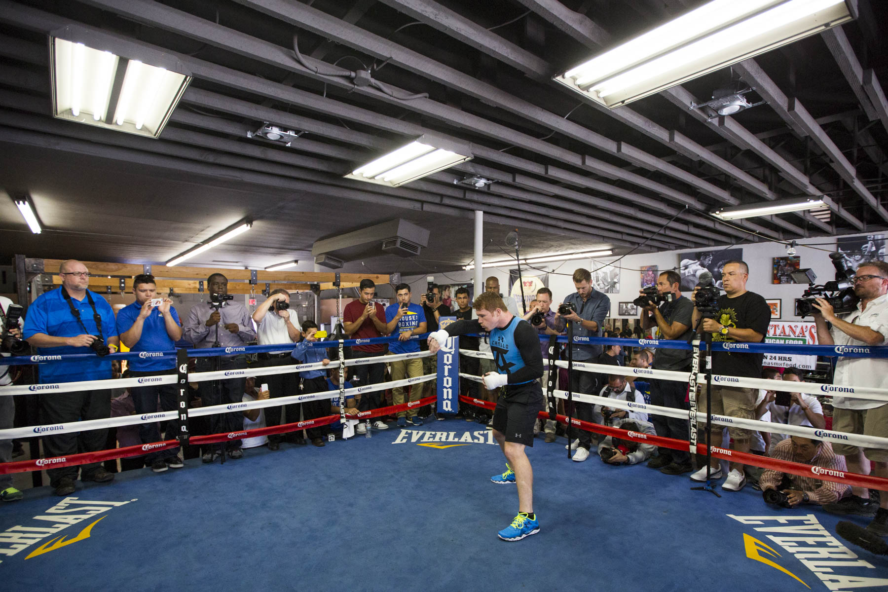 Canelo Alvarez participated in a media workout Tuesday before dozens of TV cameras, print and internet reporters, bloggers and boxing videographers at the