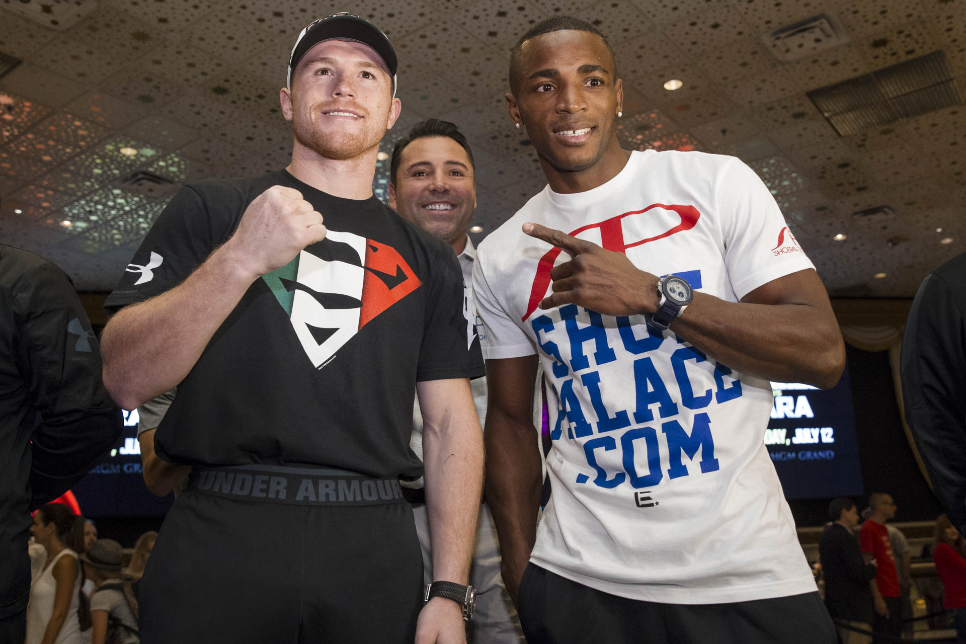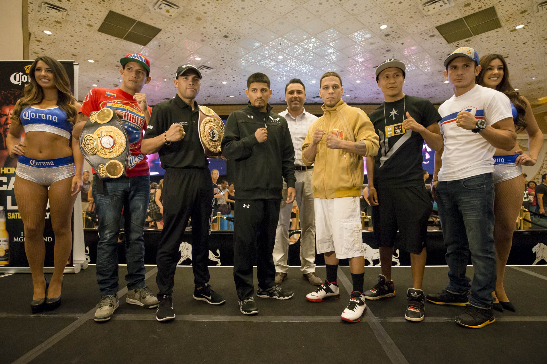 LAS VEGAS  – With “Honor & Glory: Canelo vs. Lara” just days away, Canelo Alvarez, Erislandy “The American Dream” Lara, Abner Mares, Jonathan “Polvo” Oquendo, Juan Manuel “JuanMa” Lopez and Mauricio “El Maestro” Herrera made their grand arrivals Tuesday to the MGM Grand Hotel Lobby to officially kick off fight week activities leading up to this Saturday night’s SHOWTIME PPV® event.