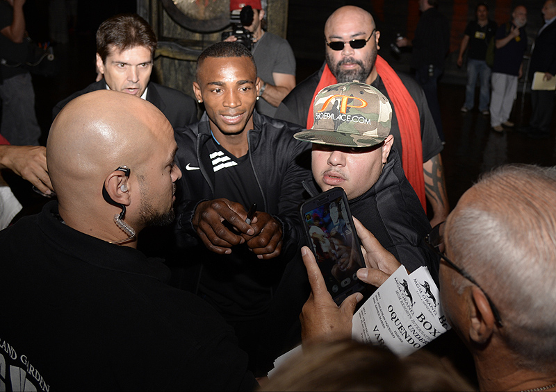 Fighters on the PPV card, Canelo Alvarez, Erislandy “The American Dream” Lara, Abner Mares, Jonathan “Polvo” Oquendo, Juan Manuel “JuanMa” Lopez, Francisco “El Bandido” Vargas, Johan “El Terrible” Perez, and Mauricio “El Maestro” Herrera joined undercard fighters Tomoki Kameda, Pungluang Singyu, Yamaguchi Falcao and Jason Quigley in the ring to give the fans a show before their Saturday bouts.