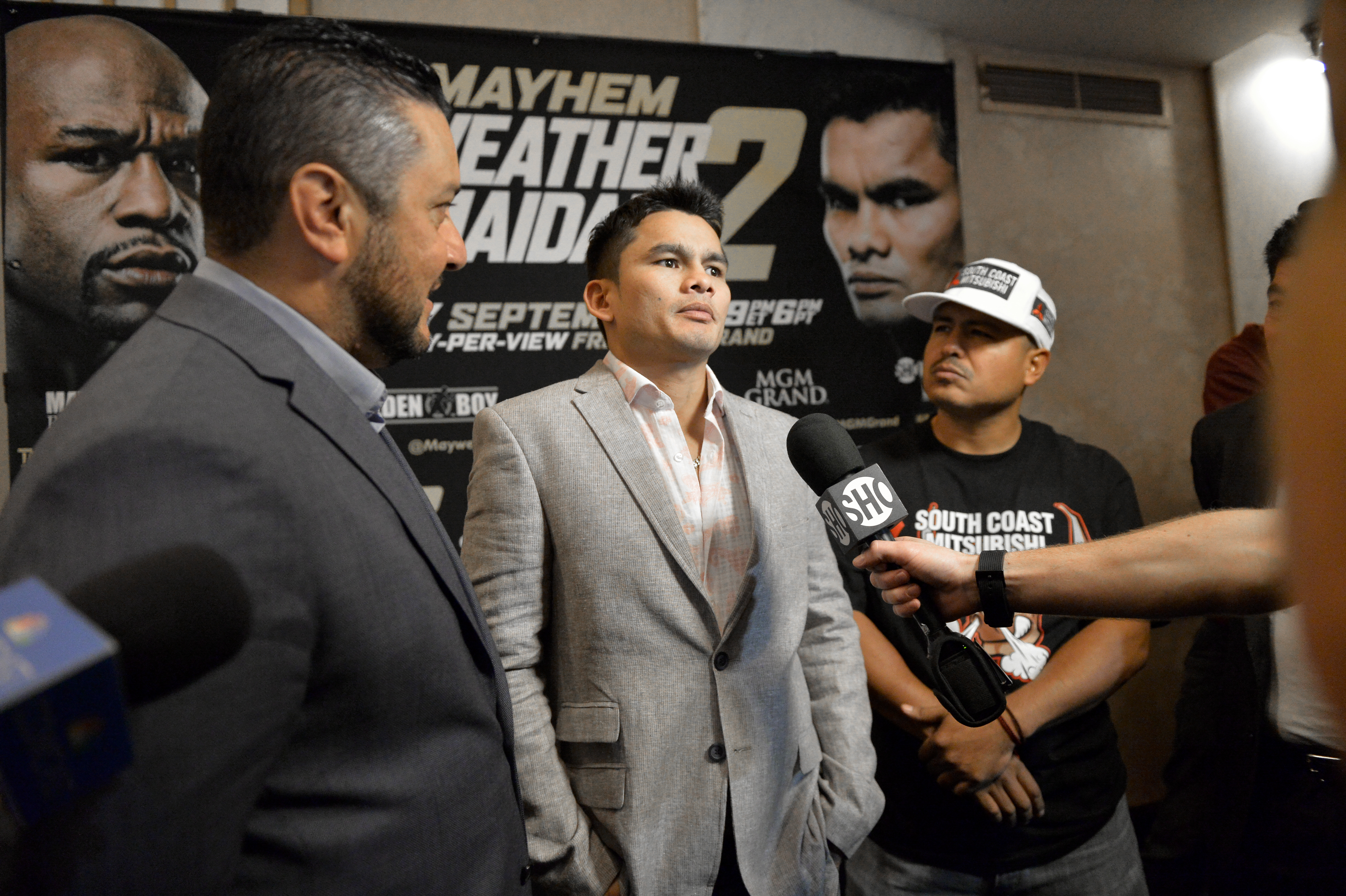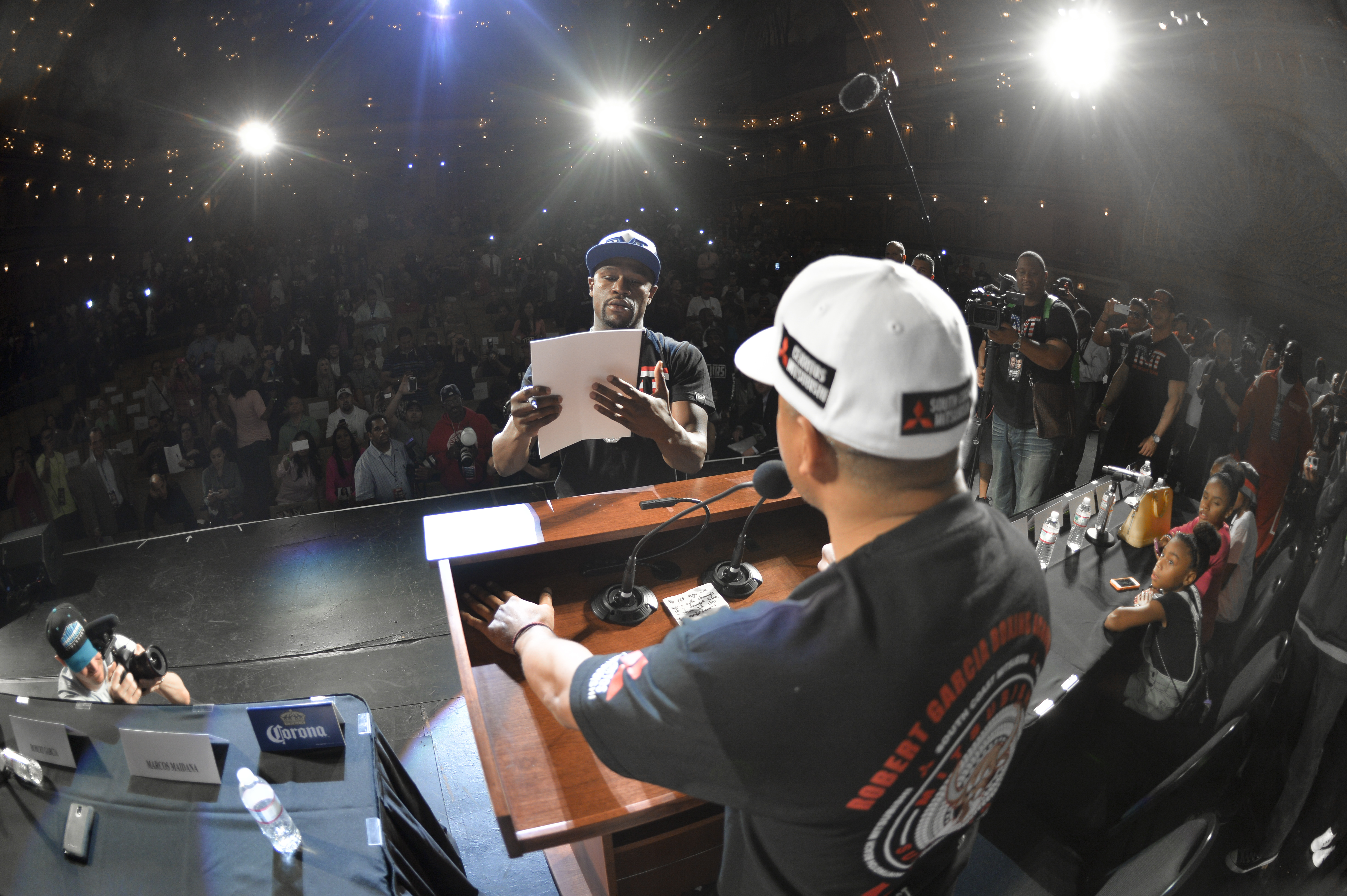 Not to be outdone, Maidana and Garcia returned the favor when it was Mayweather’s turn on the dais, jetting off stage to greet a large group of “Chino” fans as they chanted “Ole.”