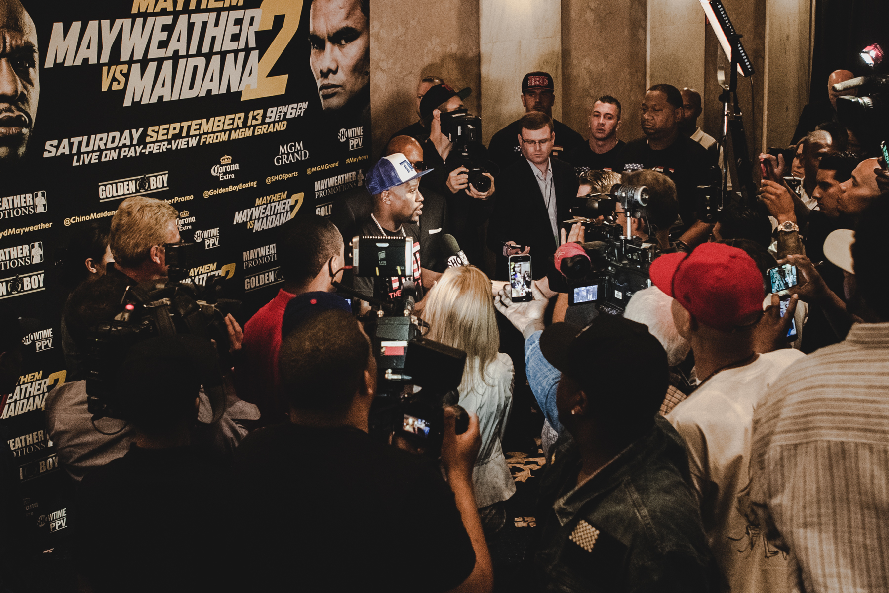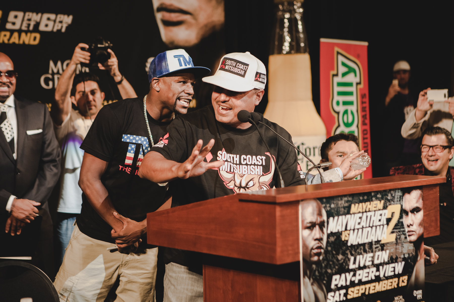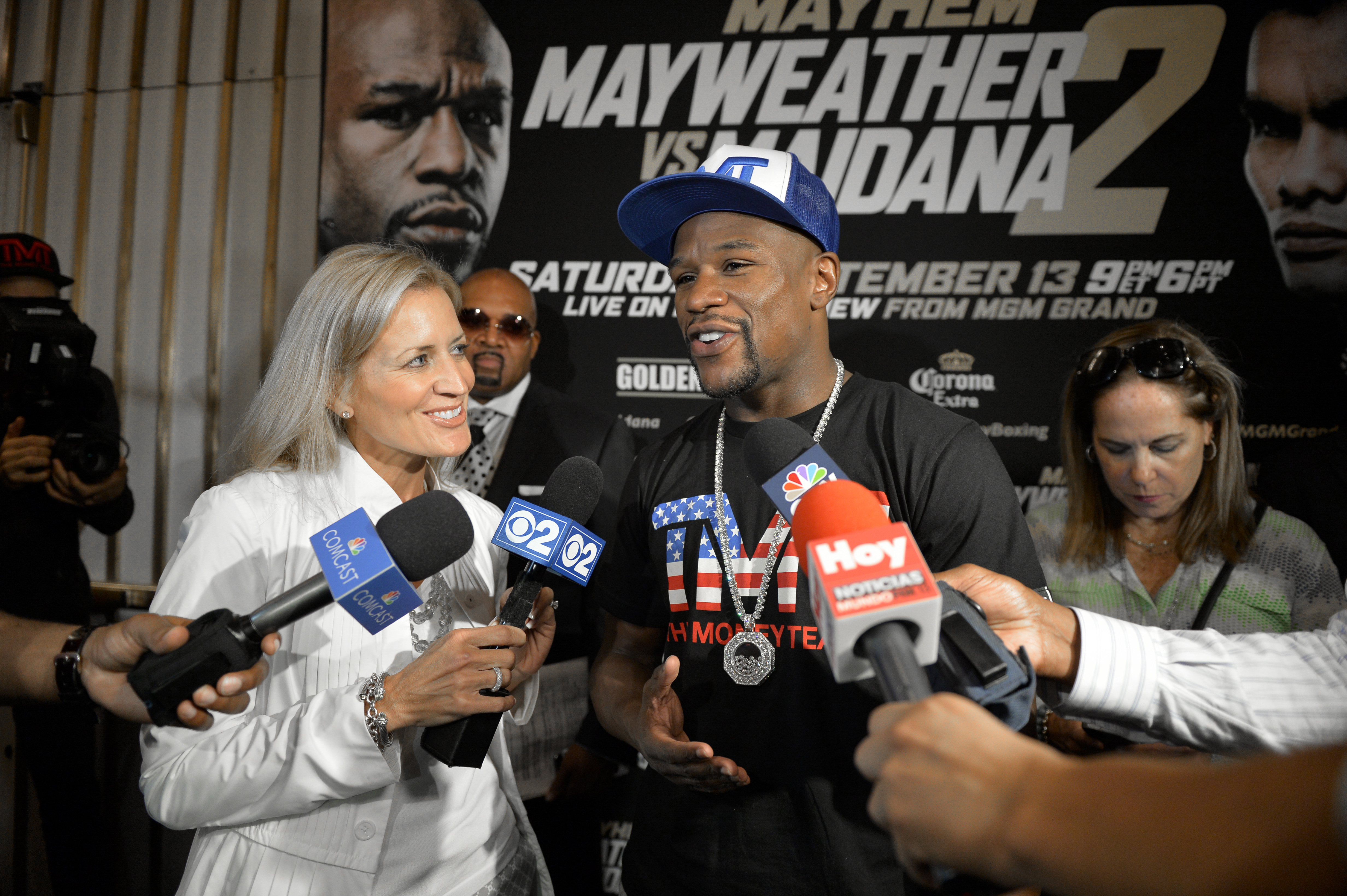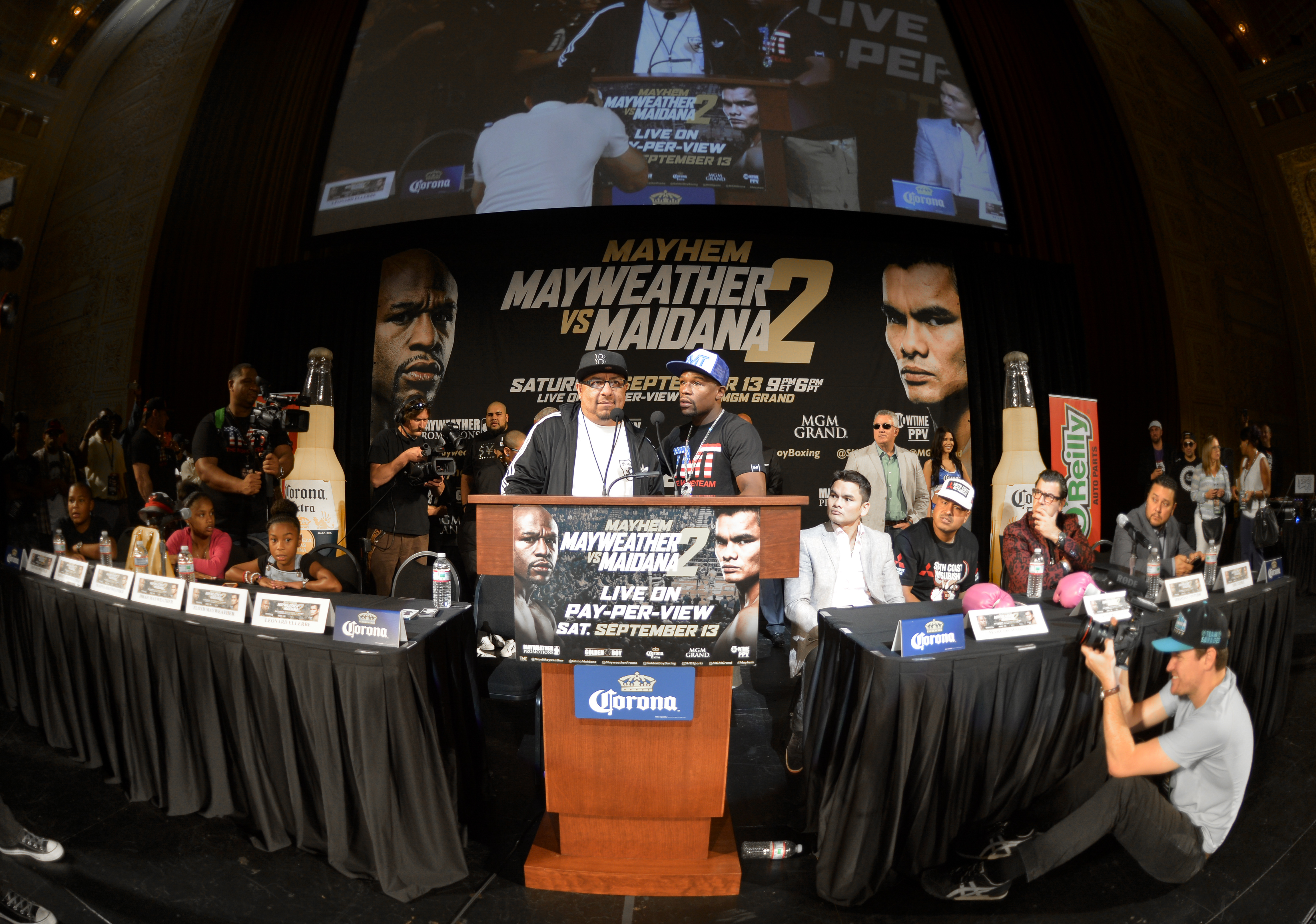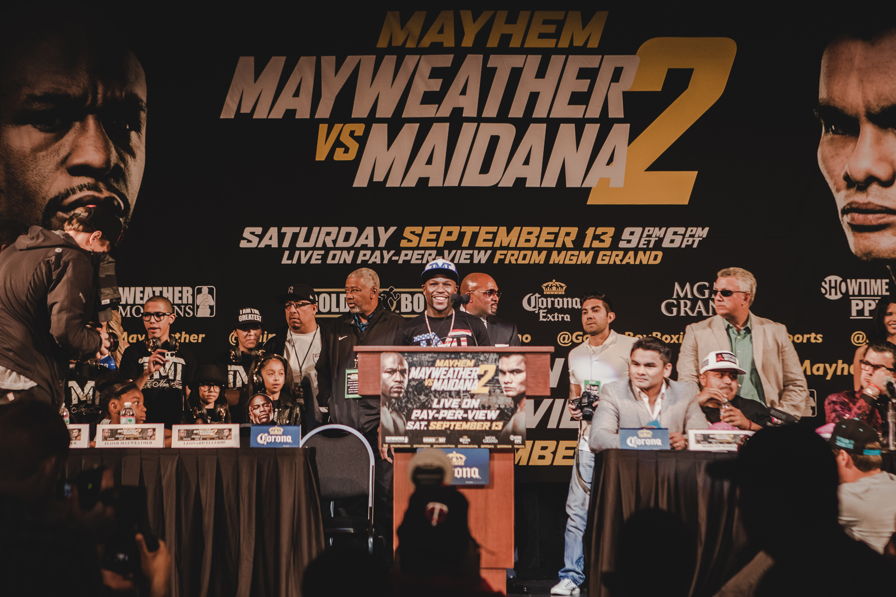 CHICAGO – The “MAYHEM” that is the Floyd Mayweather and Marcos Maidana cross-country promotional press tour took center stage in Chicago on Tuesday as both fighters resorted to creative tactics to get under their opponent’s skin as they announce their Sept. 13 rematch taking place at MGM Grand in Las Vegas, live on SHOWTIME PPV.