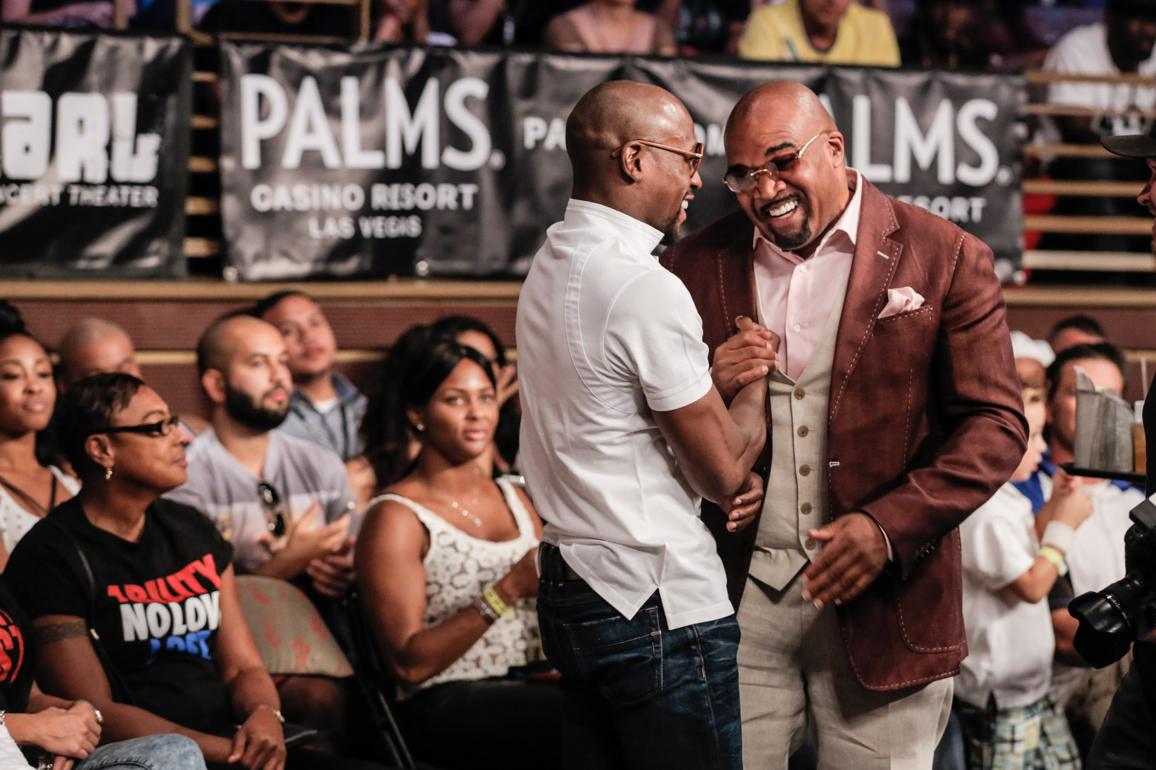 Boxing superstar and 11-Time World Champion Floyd Mayweather, whofaces Marcos “El Chino” Maidana in the main event of “MAYHEM: Mayweather vs. Maidana 2” on Saturday, Sept. 13 live on SHOWTIME PPV® from the MGM Grand Garden Arena in Las Vegas, watched the nine-bout Mayweather Promotions fight card from ringside. He was interviewed by Farhood after the Gavril-Falowa fight.
