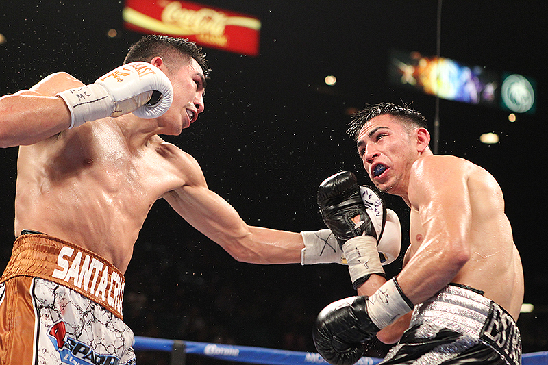 “Like I expected, it was a war,” Santa Cruz said. “He came prepared. We hurt him and we didn’t let the chance go away. We kept going after him and we stopped him. I hurt him with the right hand. I knew he was hurt so I went after him. I knew Kenny Bayless would stop it because he wasn’t throwing punches.