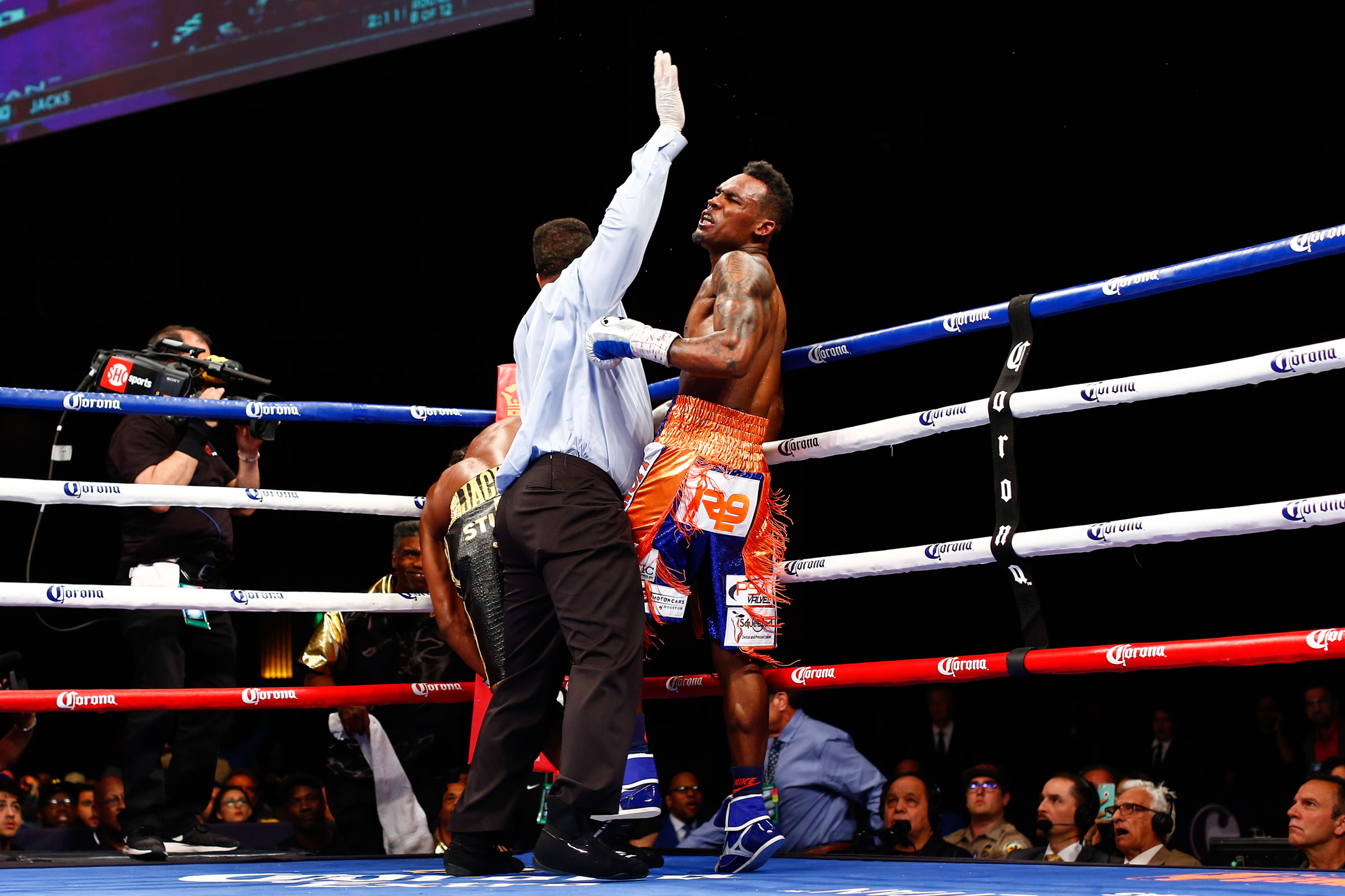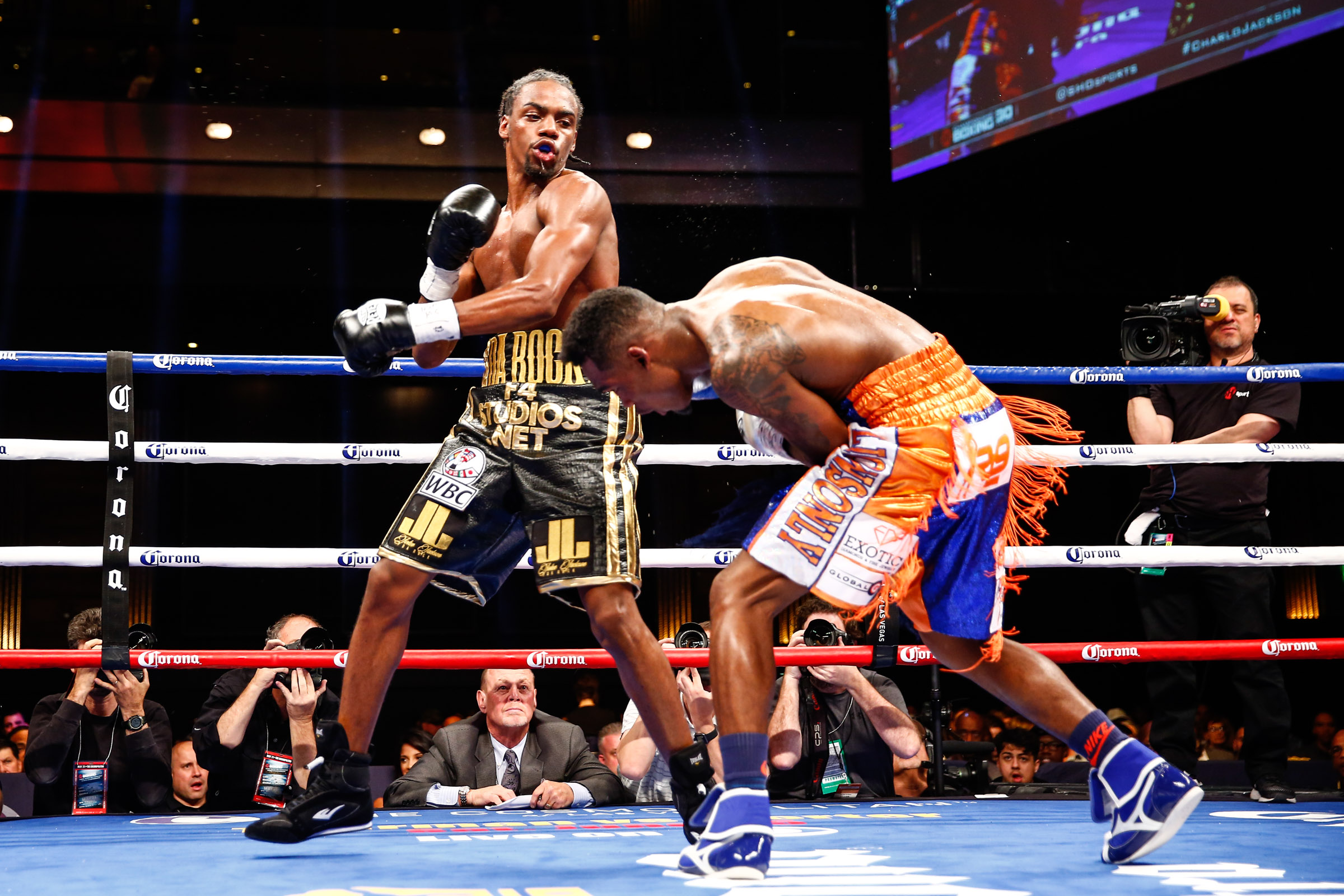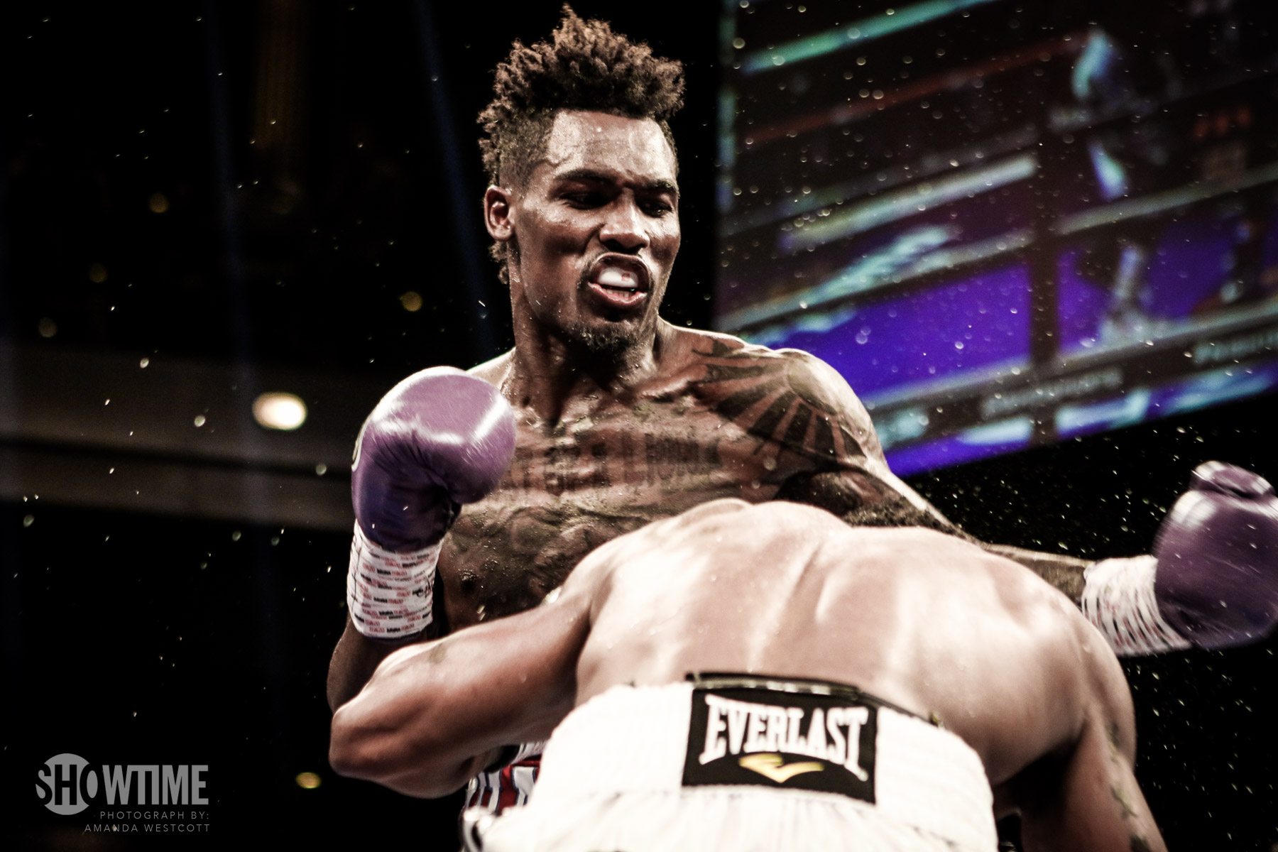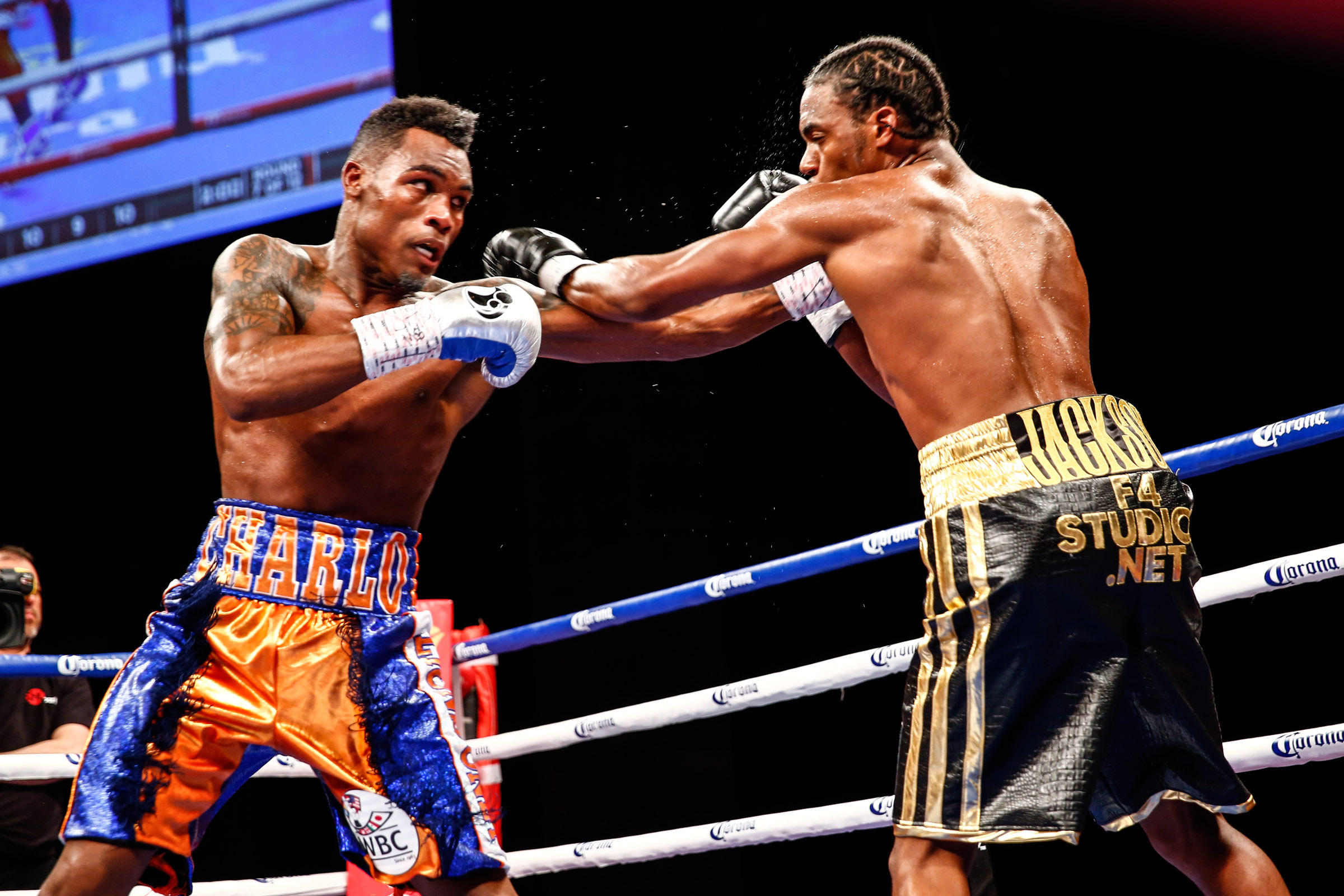 In the opening bout of the three fight telecast, Jermell Charlo (28-0, 13 KOs) earned the vacant WBC Super Welterweight World Championship by rallying from five points down to register an eighth-round knockout over John “Da Rock” Jackson (20-3, 15 KOs), of St. Thomas, Virgin Islands (Video highlights: http://s.sho.com/1VeFFVq).