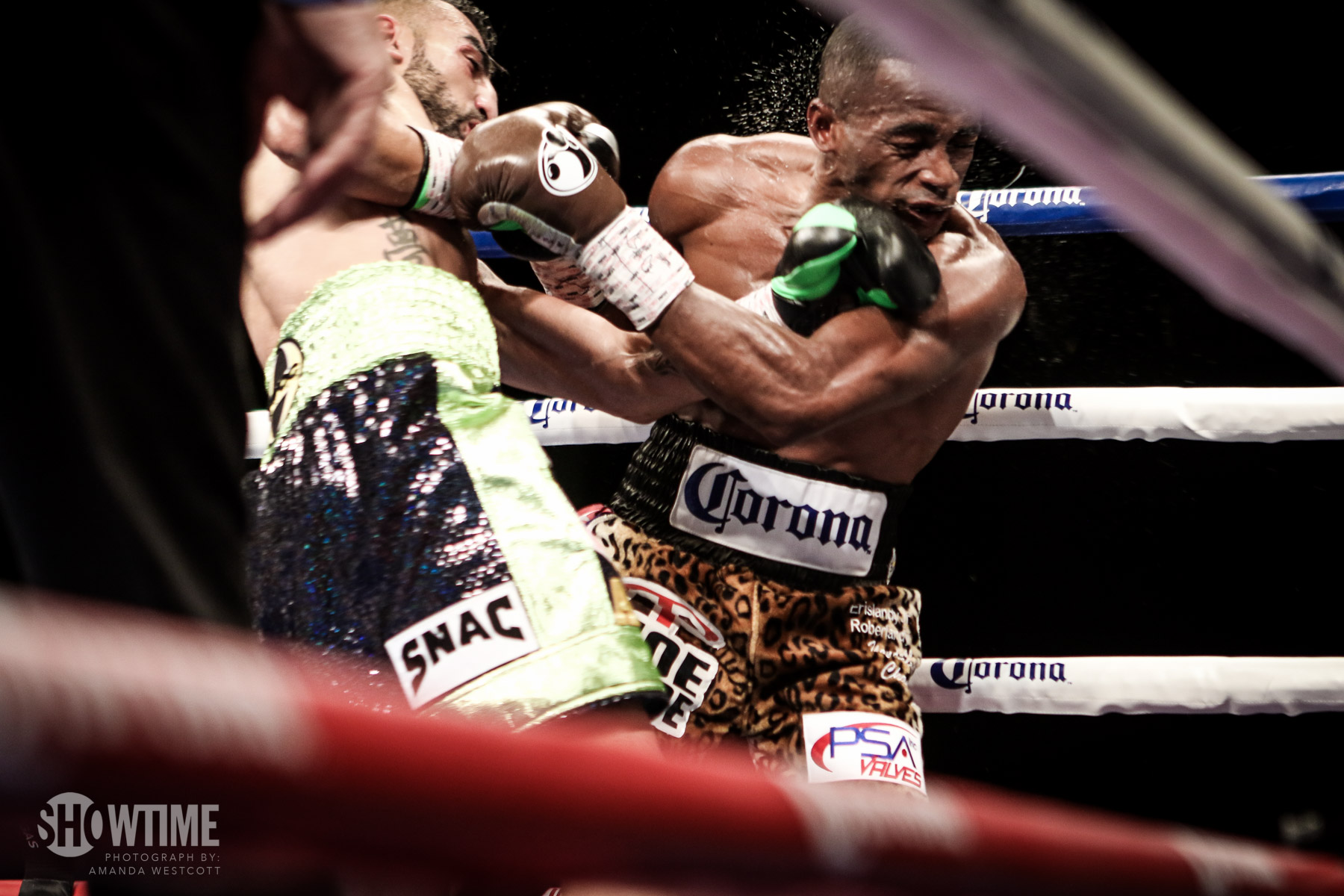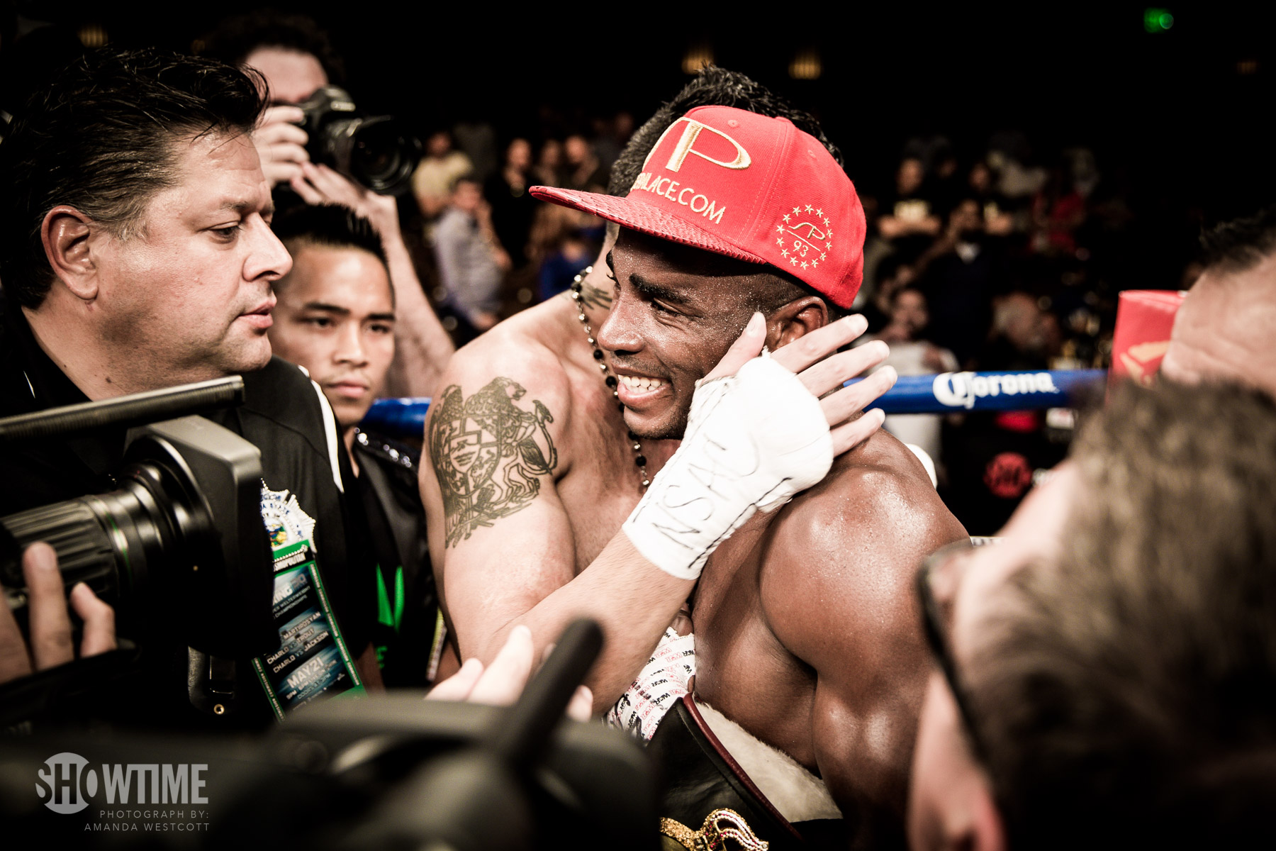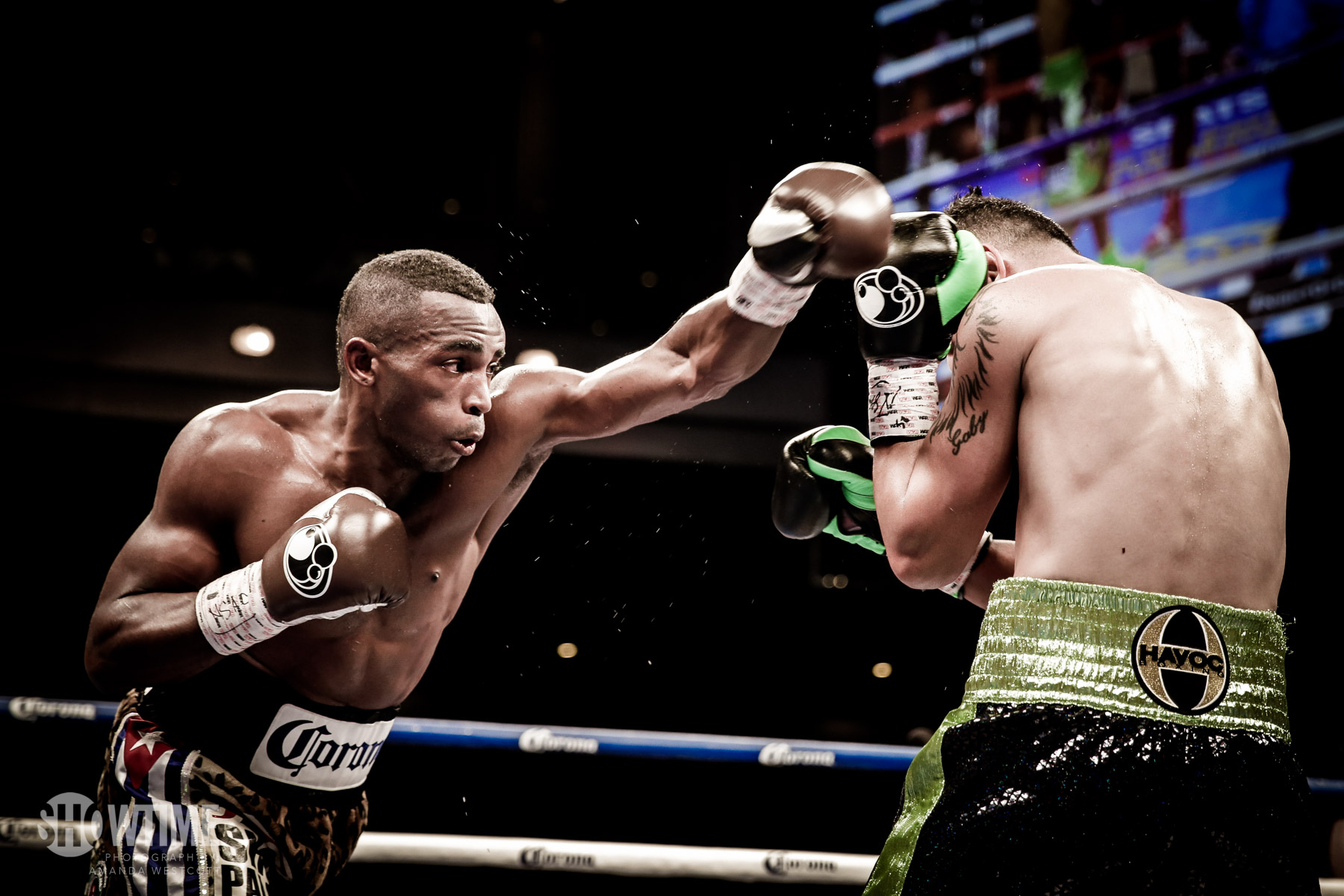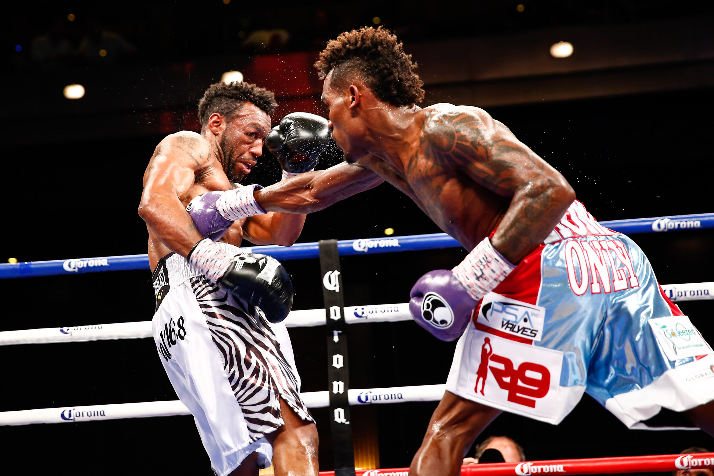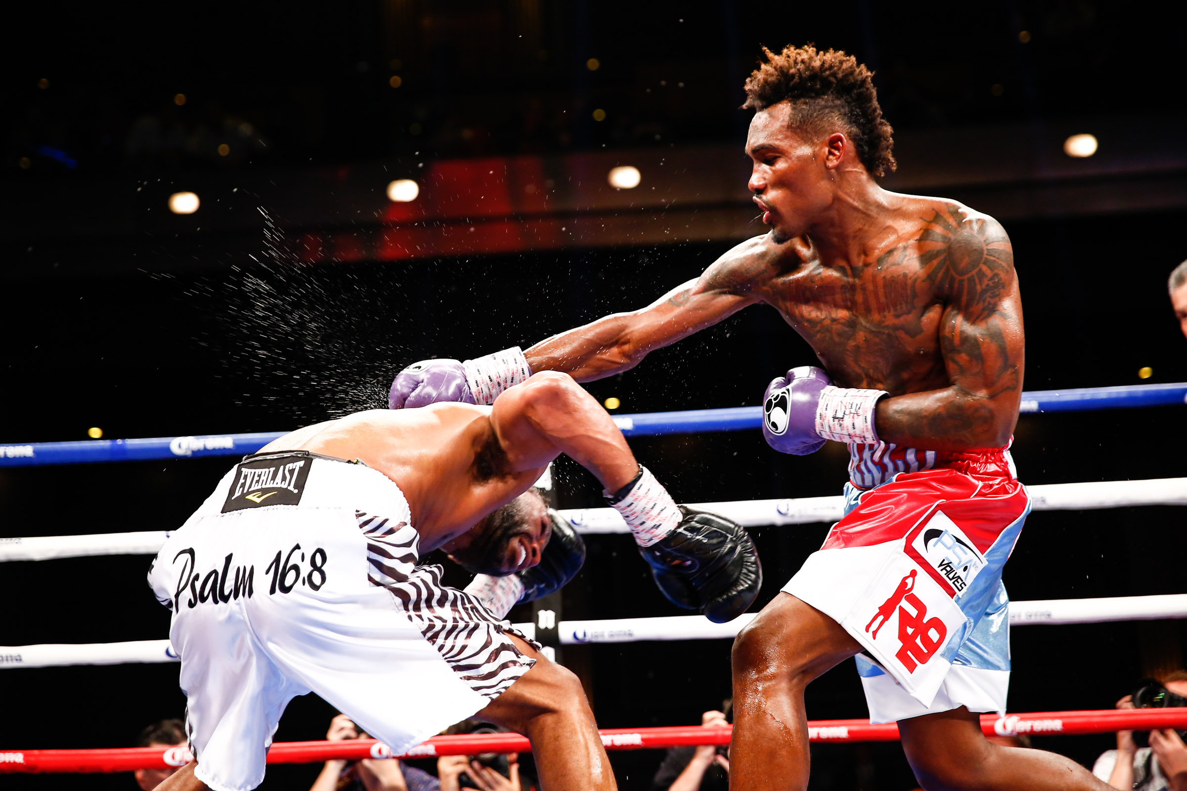 In the opening bout of the three fight telecast, Jermell Charlo (28-0, 13 KOs) earned the vacant WBC Super Welterweight World Championship by rallying from five points down to register an eighth-round knockout over John “Da Rock” Jackson (20-3, 15 KOs), of St. Thomas, Virgin Islands (Video highlights: http://s.sho.com/1VeFFVq).