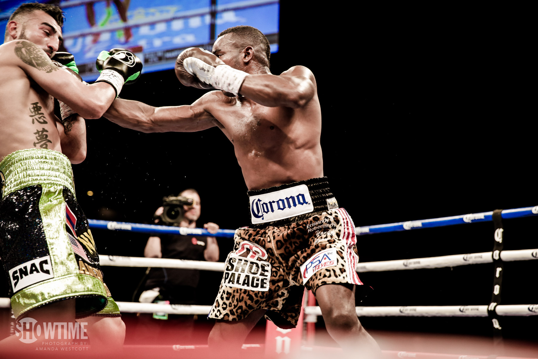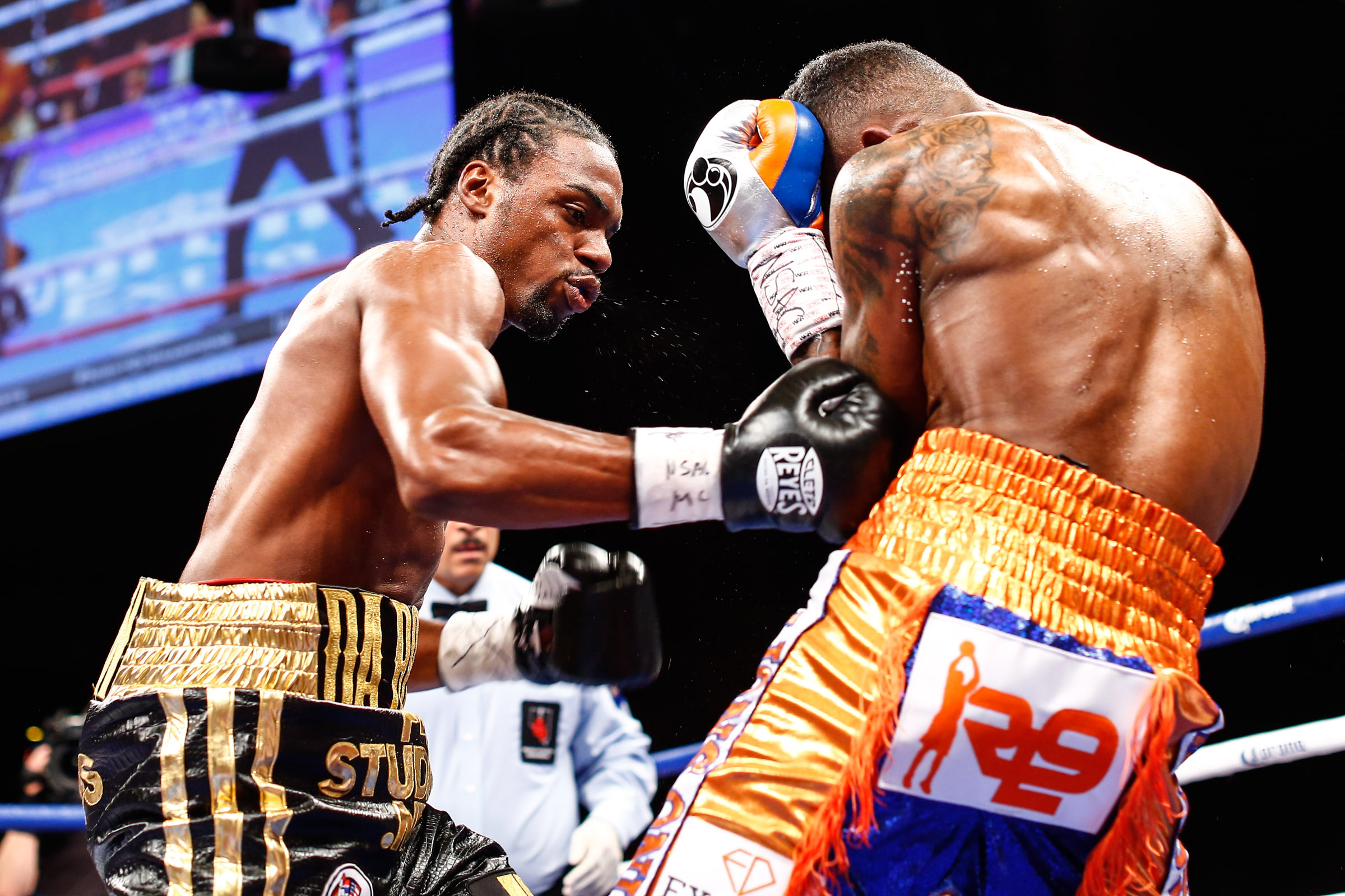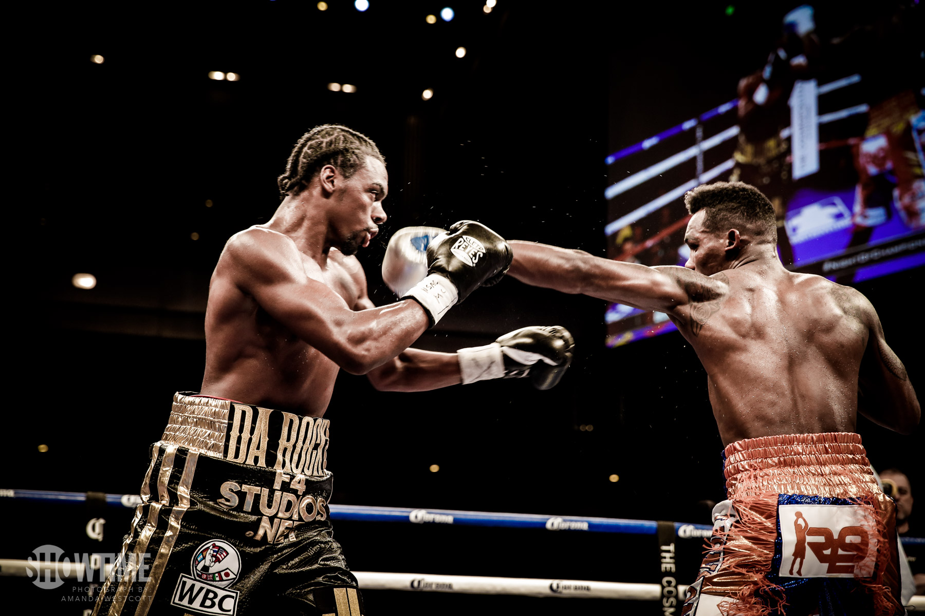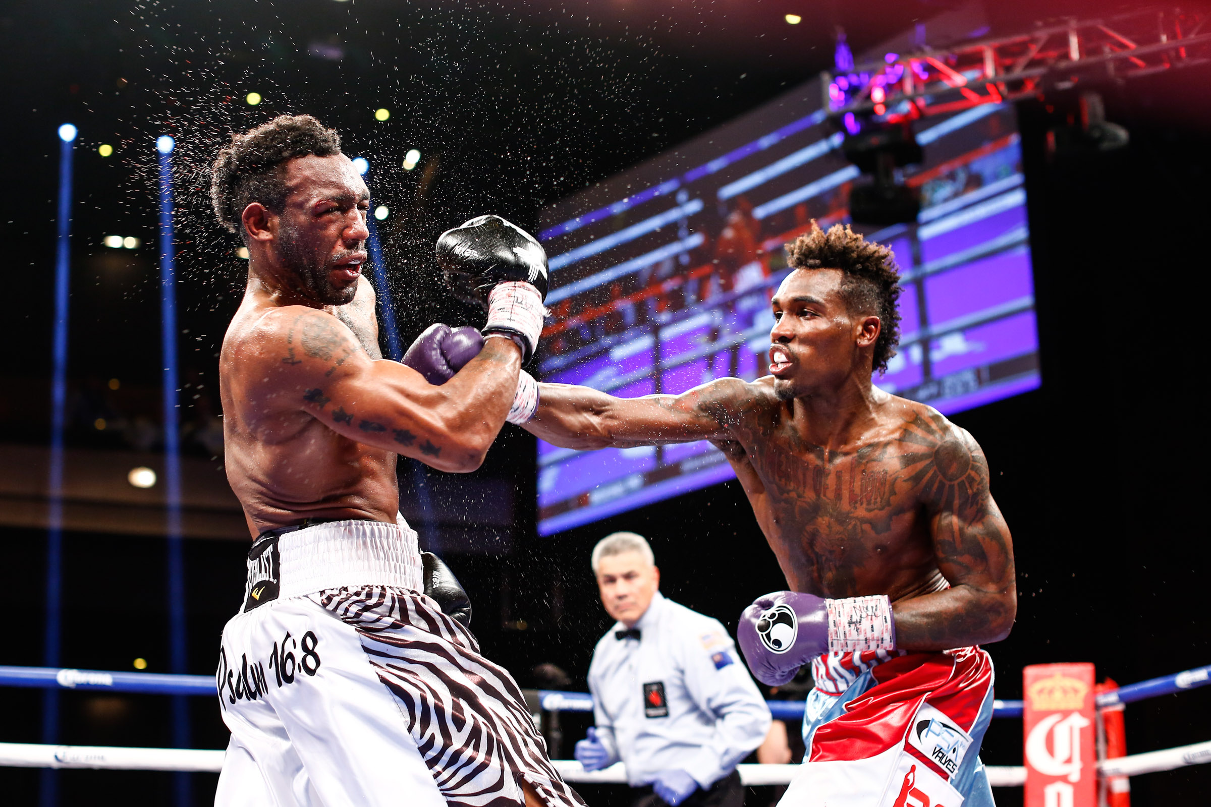 In the opening bout of the three fight telecast, Jermell Charlo (28-0, 13 KOs) earned the vacant WBC Super Welterweight World Championship by rallying from five points down to register an eighth-round knockout over John “Da Rock” Jackson (20-3, 15 KOs), of St. Thomas, Virgin Islands (Video highlights: http://s.sho.com/1VeFFVq).