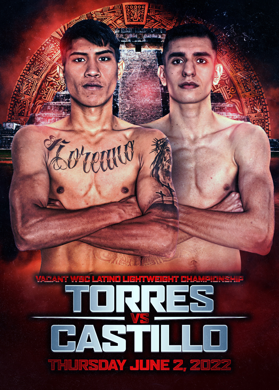 Torres vs. Castillo will be contested in a 10-round match and, if needed, an “overtime” round will be held to declare a winner in the event of a draw upon the conclusion of the scheduled distance. The tournament is sanctioned by the World Boxing Council (WBC). The winner will become the new WBC Latino Lightweight Champion, as well as receive a world rating from the WBC.