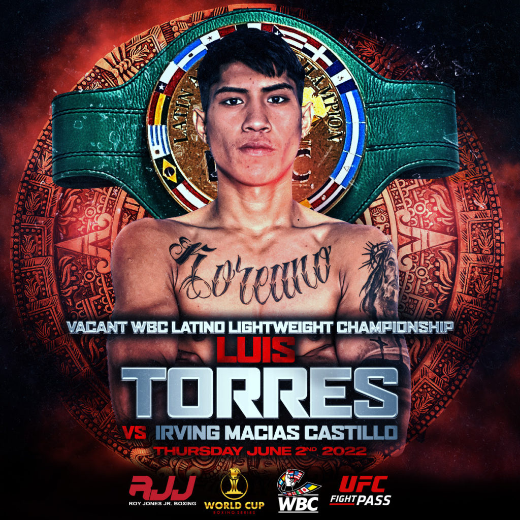 LAS VEGAS (April 7, 2022) – “WCBS 4-Man Lightweight Tournament” favorite and hometown hero, Luis “Koreano” Torres (15-0, 10 KOs), is preparing for a very tough fight with Irving “Poderoso” Castillo (12-2, 8 KOs) in the June 2nd championship final for the vacant World Boxing Council (WBC) Latino Lightweight Championship.