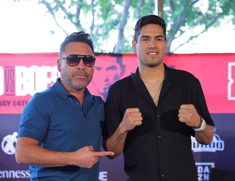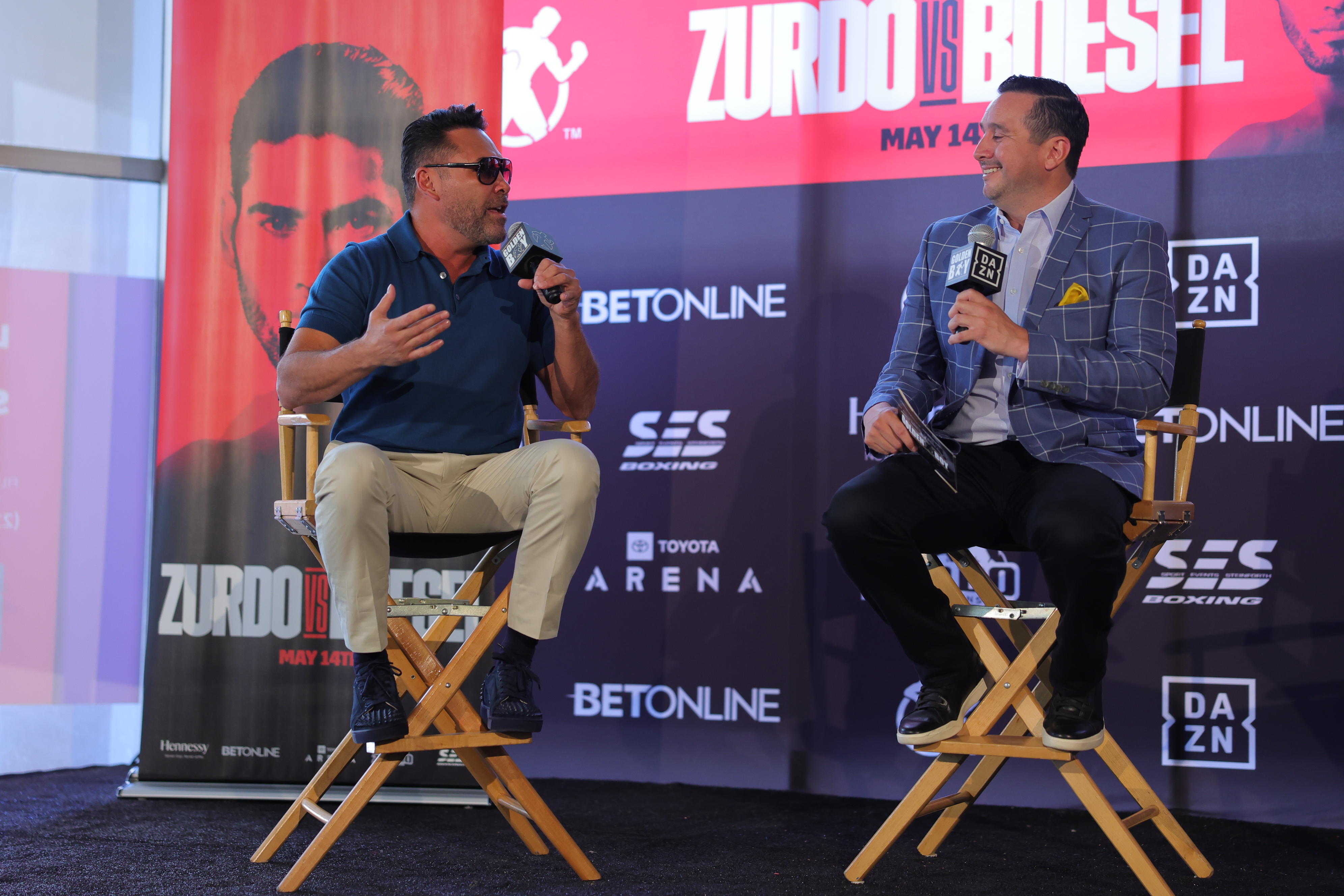 LOS ANGELES, CA (April 25, 2022): Former world champion and light heavyweight Mexican boxing star Gilberto “Zurdo” Ramírez (43-0, 29 KOs) of Mazatlán, Mexico, and Oscar De La Hoya, Chairman and CEO of Golden Boy hosted a press conference today, Monday, April 25 to discuss Zurdo’s upcoming fight against former WBA Interim Light Heavyweight World Champion Dominic Boesel (32-2, 12 KOs) of Freyburg, Germany on Saturday, May 14. The 12-round fight will be for the WBA Light Heavyweight Final Eliminator and will take place at the Toyota Arena in Ontario, CA and will be streamed live on DAZN.