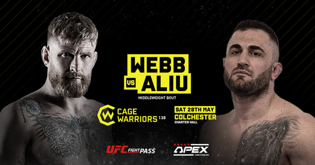 James Webb will return to fight for the first time in over a year when Cage Warriors brings a double-header of events to his hometown of Colchester, England.The former middleweight champion (pictured) has been booked for a meeting with Leon Aliu at CW 138 on Saturday, 28th May.Webb is set to have the benefit of considerable support in the Charter Hall when he faces Aliu, who’ll be strapping on the yellow gloves for the first time.Born in Albania but now based in Italy, 32-year-old Aliu has tasted defeat just once in his 10 professional outings to date. All nine of his wins have been secured inside the distance.“This is a great chance to compete for the best organisation in Europe, but also to fight my opponent in his hometown,” said Aliu. “I’m very excited about the opportunity to develop and showcase my skills on the such a big stage.”Webb, a 31-year-old member of Team KF in Dublin, Ireland, has eight wins and three losses on his ledger.“I’m very much looking forward to returning to Europe’s biggest MMA promotion and putting on a show for the fans,” he said.Webb hasn’t competed since March 2021, when he suffered a loss to fellow ex-middleweight title-holder Matt Bonner, who has also been handed a Colchester assignment.