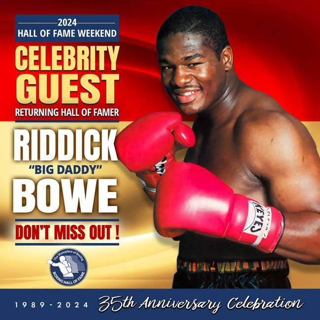 CANASTOTA, NY – The International Boxing Hall of Fame and Museum, which is celebrating its 35th Anniversary in 2024, is pleased to announce that Hall of Fame heavyweight champion Riddick “Big Daddy” Bowe will return to Canastota for the 2024 Hall of Fame Induction Weekend set for June 6-9.