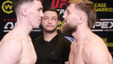 In the evening’s main event, both challengers to the vacant Cage Warriors welterweight title successfully made championship weight, with ‘The Swiss Army Knife’ Daniel Konrad coming in at 169.3lbs, while Dublin’s James Sheehan tipped the scales at 159.2lbs.
