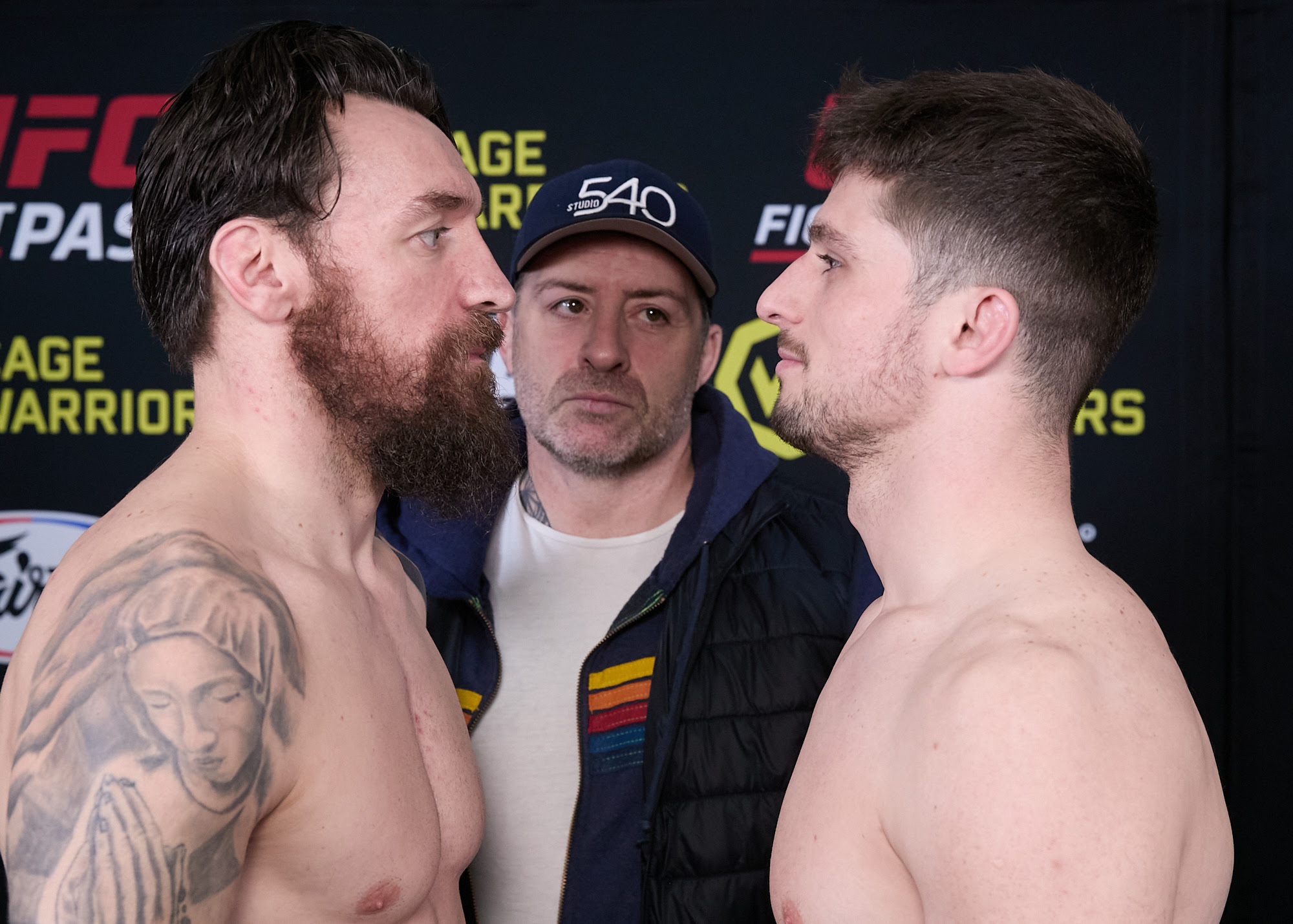 Only Jamie Macdonald was unable to make his contracted weight, coming in at 209lbs for his light heavyweight clash with France’s Nell Ariano (204.8lbs).
