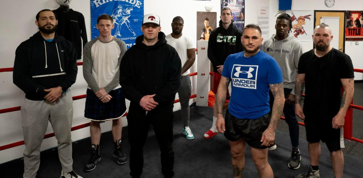(L-R) – (front) Russell Kimber, James Perkins, Anthony Andreozzi and Ryan Clark; (back) Ricky Ford, Bernard Joseph, Thomas O’Toole and Julien Baptiste – (picture courtesy of Granite Chin Promotions)