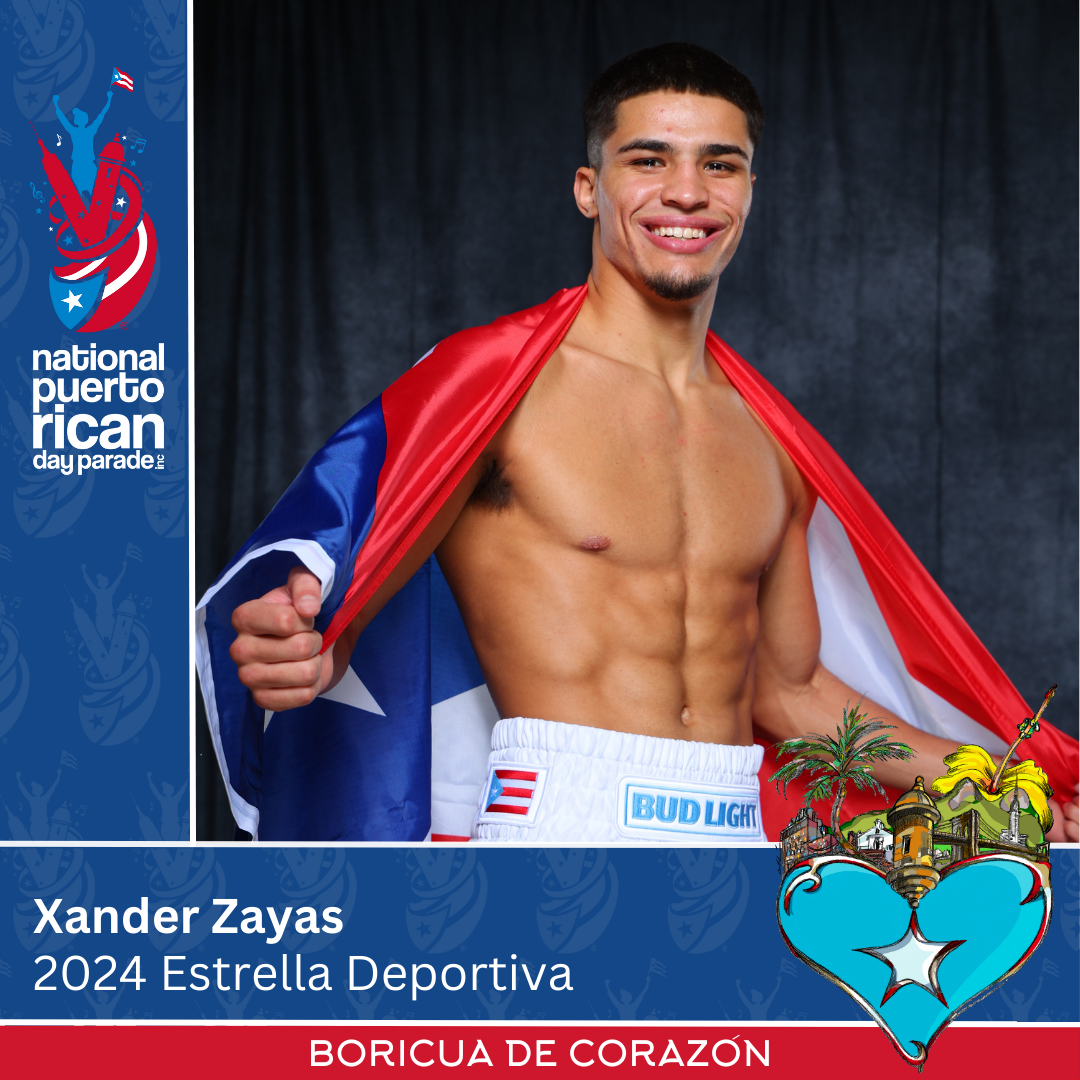NEW YORK (May 21, 2024) – The Puerto Rican Day Parade Committee has selected junior middleweight contender Xander Zayas as the recipient of the prestigious “Sports Star” honor for the 2024 Puerto Rican Day Parade in New York City.