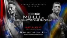 Unbeaten, Montreal-based contender Christian “Solide” Mbilli will face three-time world title challenger Sergiy “The Technician” Derevyanchenko in the 10-round main event on Saturday, Aug. 17, at Videotron Centre in Quebec City, Canada.