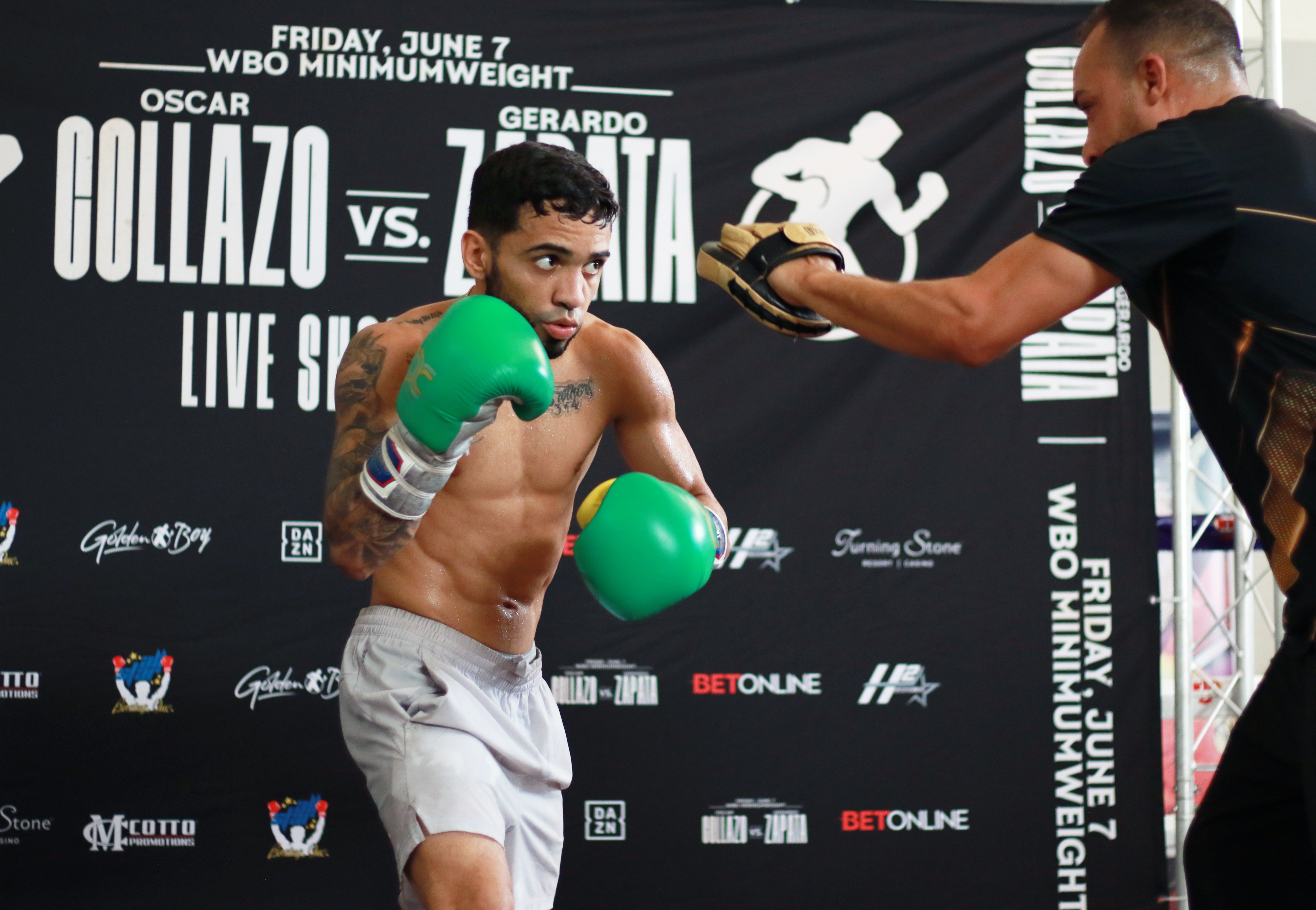 VILLALBA, PUERTO RICO – Undefeated, WBO Minimumweight World Champion Oscar “El Pupilo” Collazo (9-0, 7 KOs) of Villaba, Puerto Rico hosted a media workout ahead of his championship clash on Friday, June 7. Collazo will face Managua, Nicaragua’s Gerardo Zapata (14-1-1) in a special 12-round fight that will be a part of the Boxing Hall of Fame Induction Weekend. The event will take place at Turning Stone Resort Casino, and is co-promoted with Miguel Cotto Promotions and broadcast around the world on DAZN.