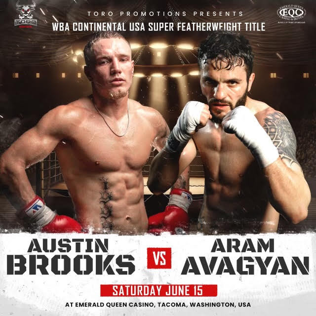 In his Toro debut on June 15th, Brooks will make his first title defense against 2015 Armenian Olympian Aram “Warrior” Avagyan (11-1-2, 5 KOs) in the 10-round main event.