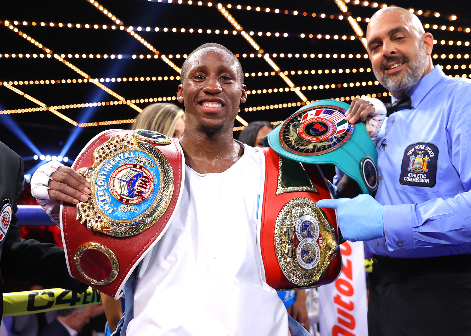 Bruce “Shu Shu” Carrington, the Brownsville-born featherweight contender, made it “Shu York City” again. Carrington (12-0, 8 KOs) battered and then stopped Panamanian power puncher Brayan De Gracia (29-4-1, 25 KOs) in the eighth round.