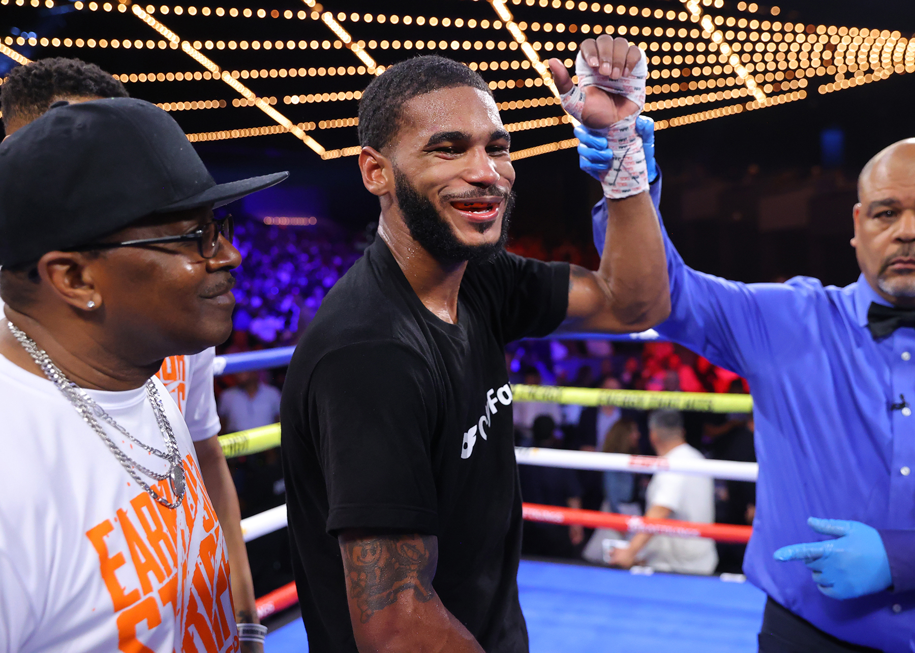De Gracia got the assignment on less than a week’s notice but had been in training camp for more than six weeks. He proved to be a tough riddle in the early rounds, but Carrington slowly but surely found his groove. In the fifth, a cuffing right hand to the ear dropped De Gracia, and it was only a matter of time. A right sent De Gracia down and nearly through the ropes in the seventh. With De Gracia in full retreat mode in the eighth, Carrington poured on the punishment until Eric Dali waved it off.