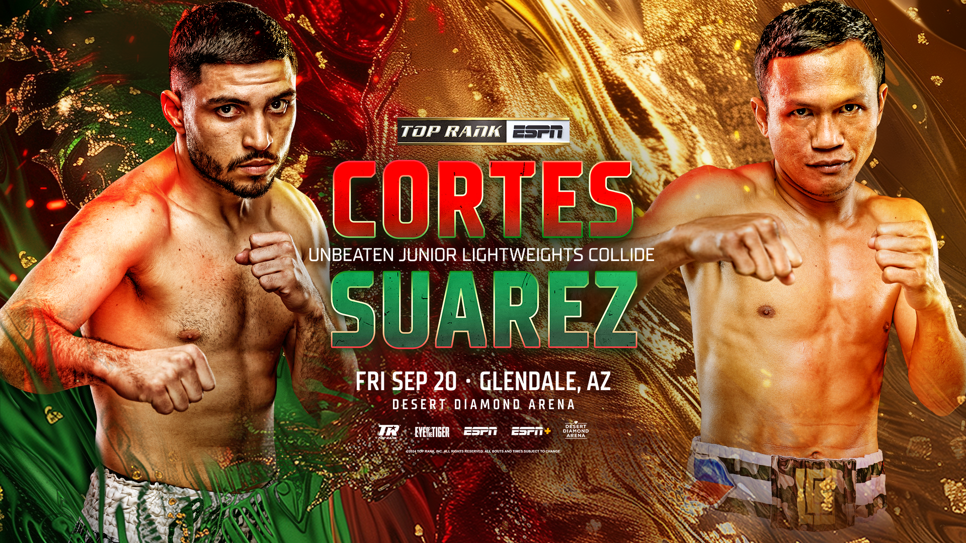 Cortes (22-0, 12 KOs), an eight-year pro from Las Vegas, is a top 10-ranked contender by the WBC and WBO at 130 pounds. He’s had a breakout 2024, knocking out Bryan Chevalier in four rounds in February and edging former world title challenger Abraham Nova by unanimous decision in June. Suarez (17-0, 9 KOs), a 2016 Filipino Olympian, is ranked No. 6 by the WBO and IBF. He’s fought on a pair of Top Rank on ESPN bills, winning a one-sided decision over Yohan Vasquez last August and turning away the game Louie Coria over eight rounds in April.