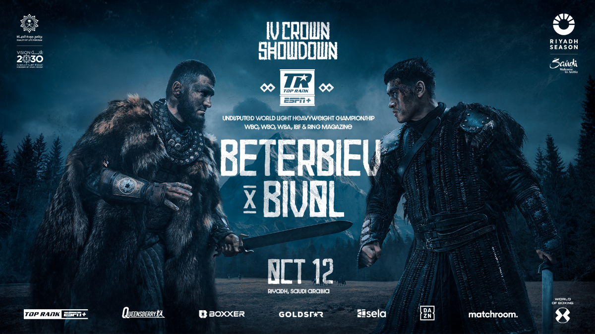 (Sept. 6, 2024) — The undisputed light heavyweight showdown between WBC/IBF/WBO unified champion Artur Beterbiev (20-0, 20 KOs) and WBA king Dmitry Bivol (23-0, 12 KOs)— Saturday, Oct. 12 at Kingdom Arena in Riyadh, Saudi Arabia — will stream live and exclusively on ESPN+ in the U.S.