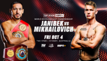 Janibek-Mikhailovich headlines a special early-morning card streaming live and exclusively on ESPN+ in the U.S. starting at 5 a.m. ET/2 a.m. PT.
