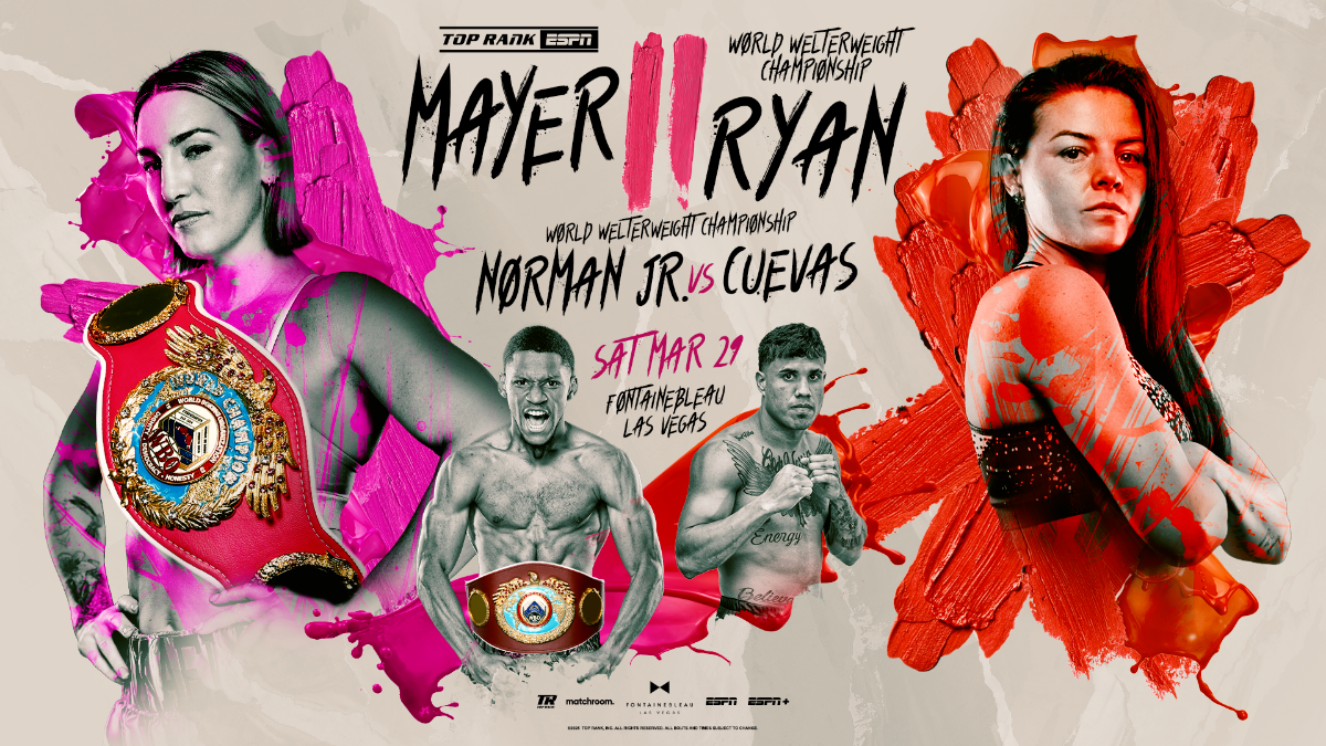 Mayer-Ryan II and Norman-Cuevas will be broadcast live on ESPN, ESPN Deportes, and ESPN+ at 10 p.m. ET/7 p.m. PT.